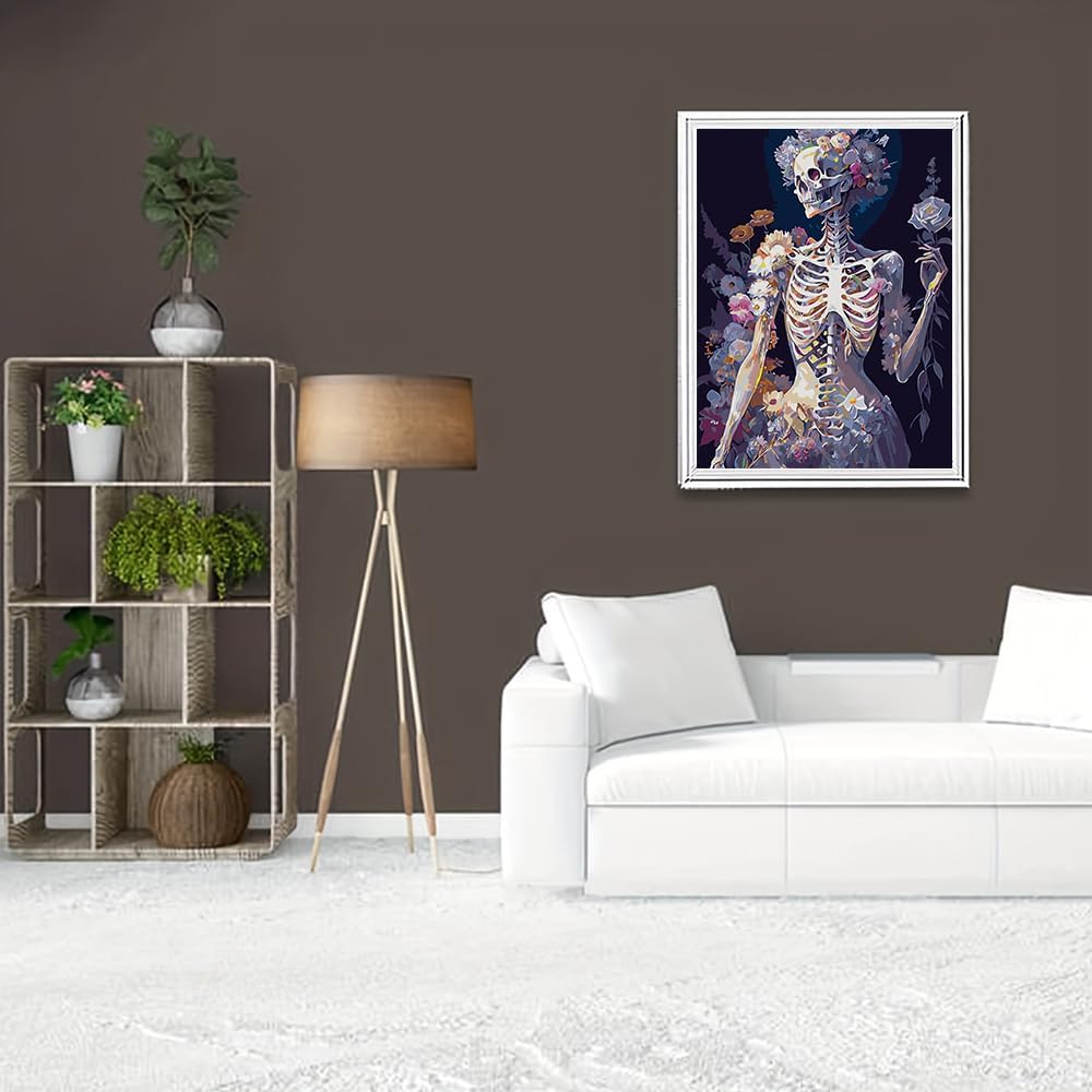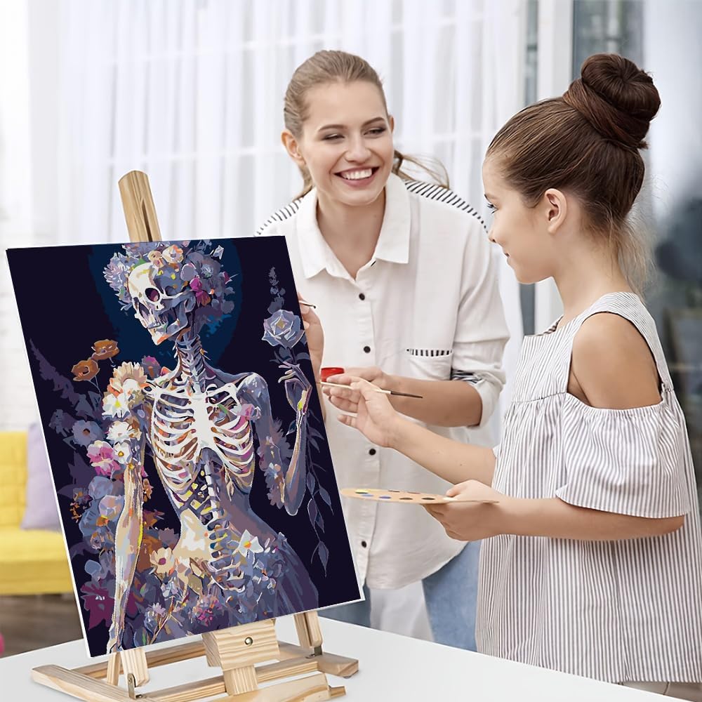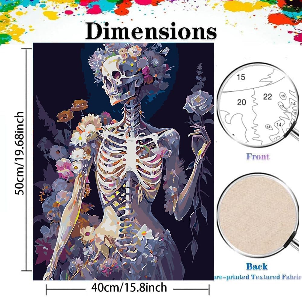 Paint by Number Kits for Adults Beginners, Easy Acrylic Simple Skull Adult Paint by Number Kits, DIY Watercolor Skeleton Paint by Numbers Kits on Canvas Without Frame for Home Wall Decor 16x20inch