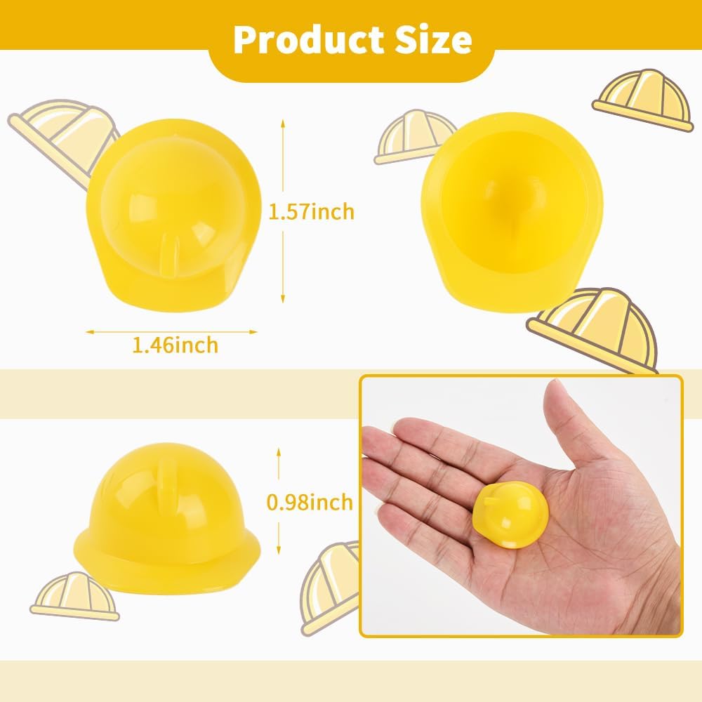 Size: The size of plastic construction hat is 1.57*1.46*0.98 inches. Mini size, cute shape, can be applied to decorate your holiday parties and is an ideal party supplement.