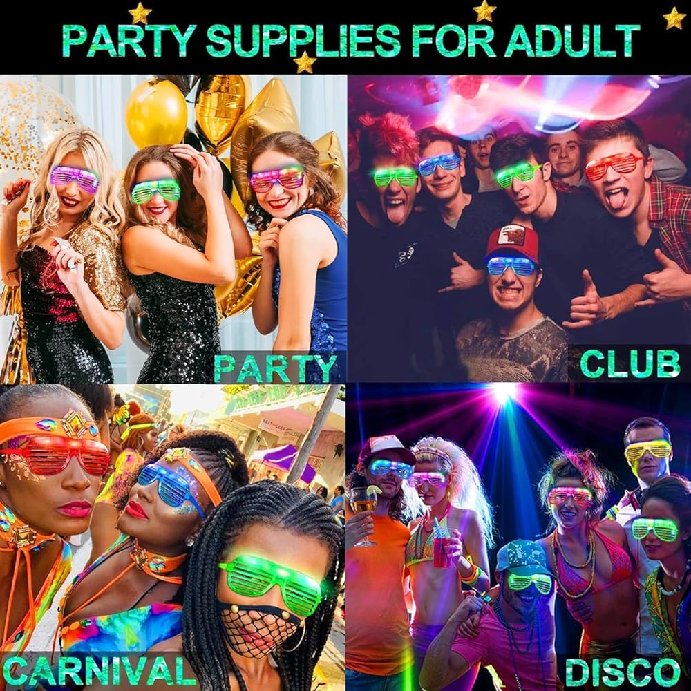 Infinite Glow In The Dark Fun: These glow in the dark glasses are great for July 4th Decorations,Independence Day, Halloween party supplies, ugly Christmas sweater accessories, outdoor concerts, birthdays, camping and raves