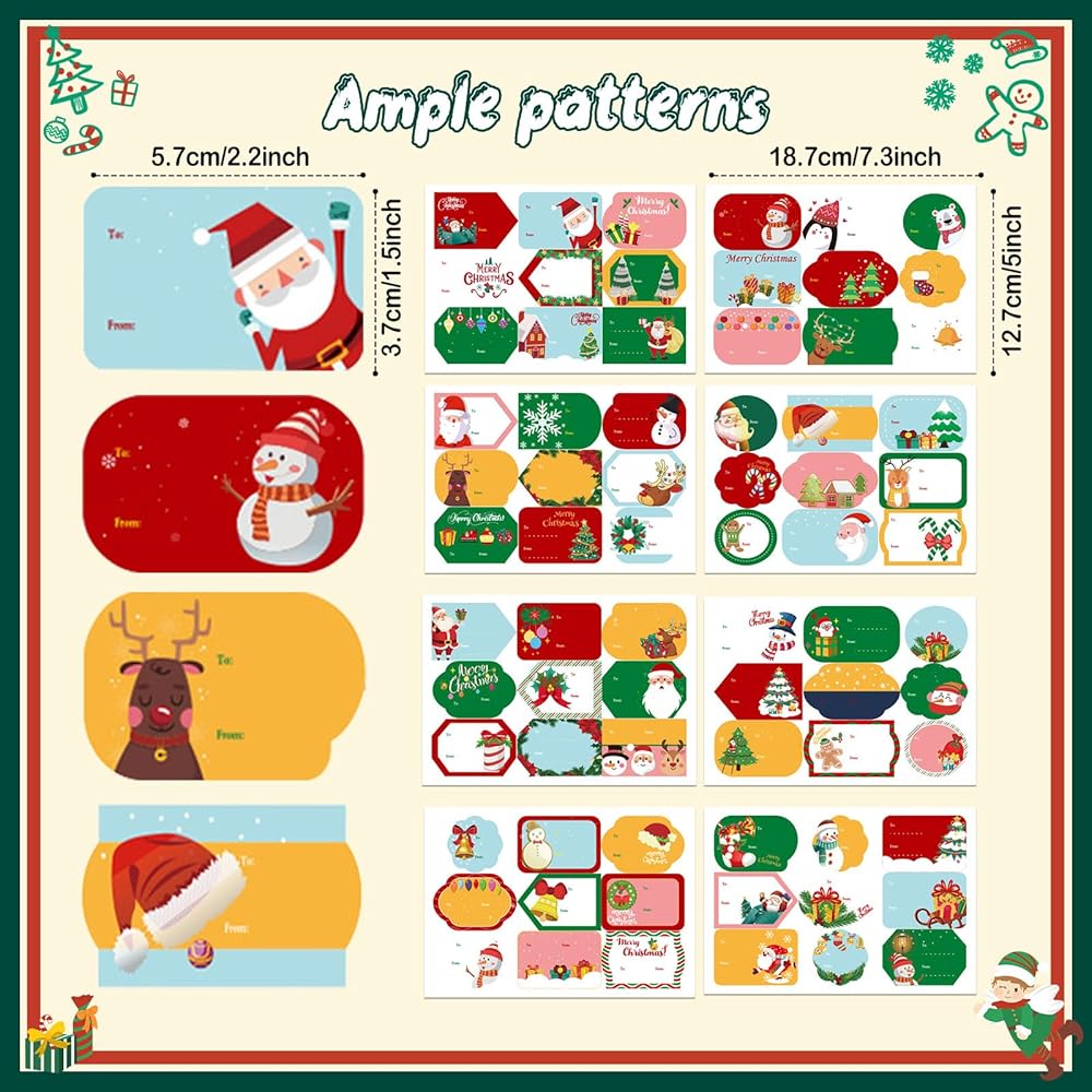 2. Package includes: You will get 288 labels, these labels have different cute designs patterns, perfect for decorating Christmas present boxes, Christmas gift cards.