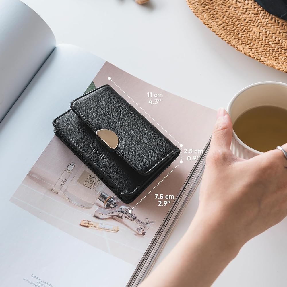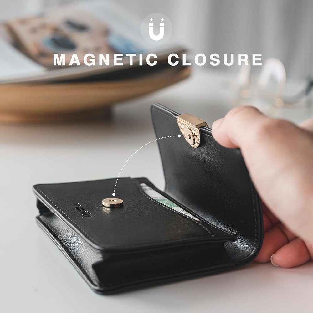 QUALITY MATERIALS -This leather wallet is made of soft PU leather fabric, delicate metal magnetic button that opean and closure smoothly, and polyester fabric lining that beautiful workmanship and, comfortable hand feeling.