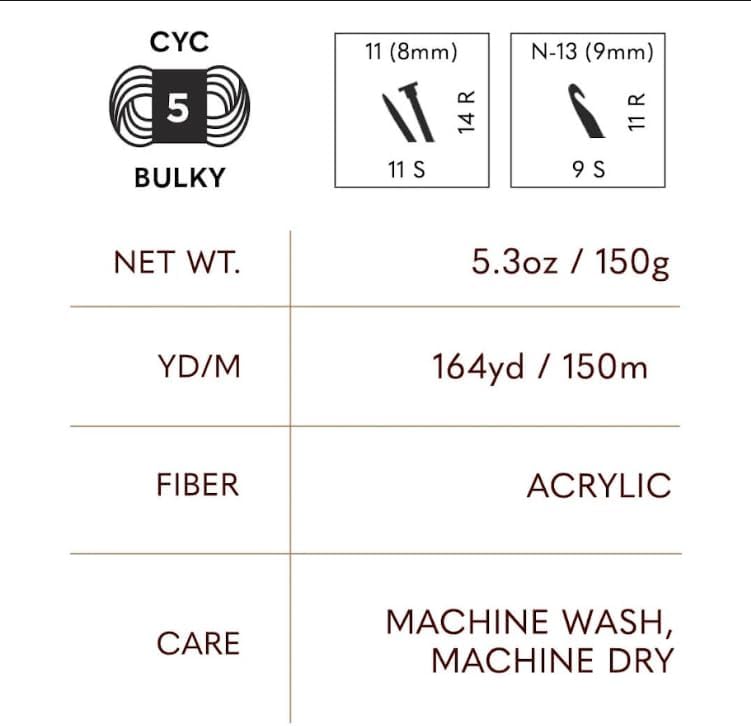 FIBER COUNT: This thick yarn is made of 100% acrylic fiber and rated CYC #5 bulky. It features vibrant, rich colors that are great for any craft or craft kit.