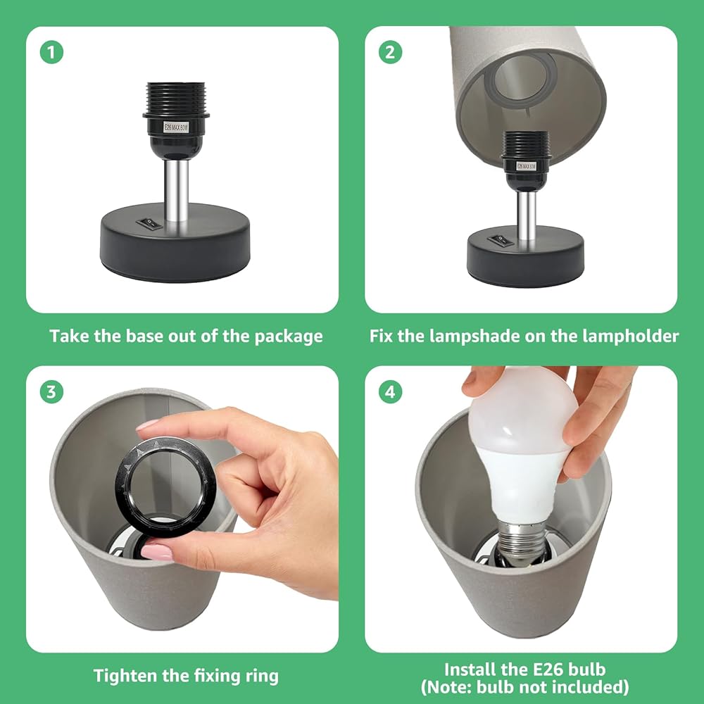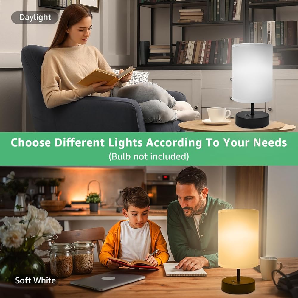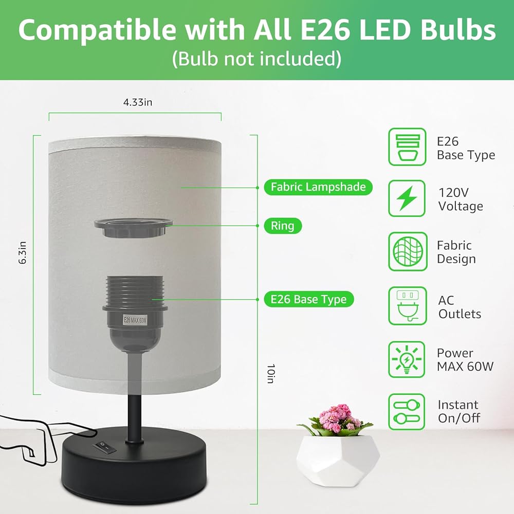 【Instant On/Off 】This lamps for night stands set of 2 comes with an instant on/off switch and AC outlets(2-prong), plug and play, one-button switch, easy to install and use. Please note that bulbs are not included. (Please use the LED bulb, max watt of the LED bulb is 60W)