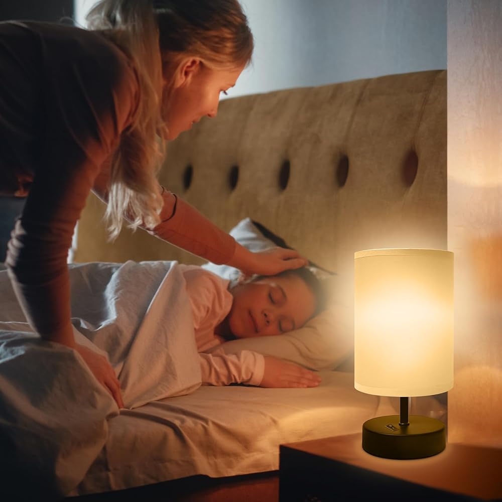 【Comfortable Glow】The small bedside lamps set of 2 uses a gray fabric lampshade, which can soften the light to protect your eyesight, especially for teenager, and can also protect teenager's delicate skin. The lampshade is not only beautiful and sturdy, but also allows your family to DIY stickers on the lampshade to improve their hands-on ability.