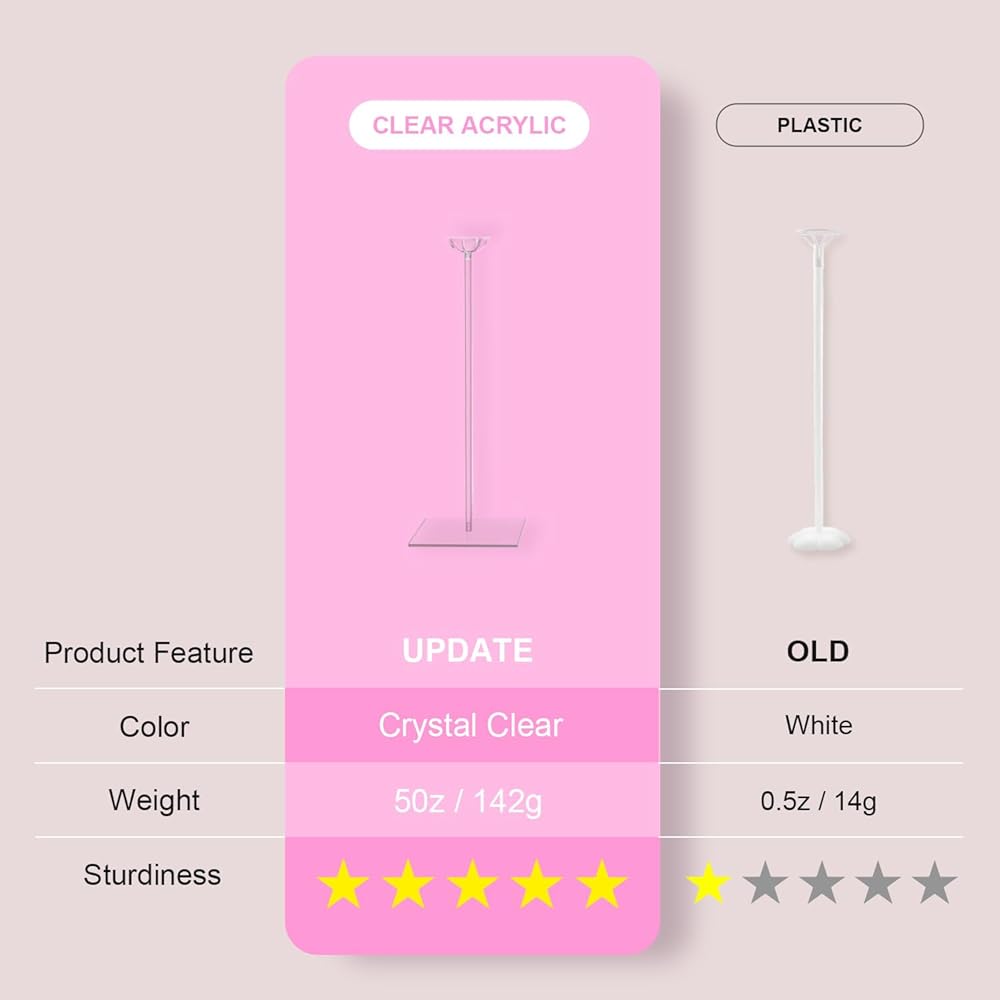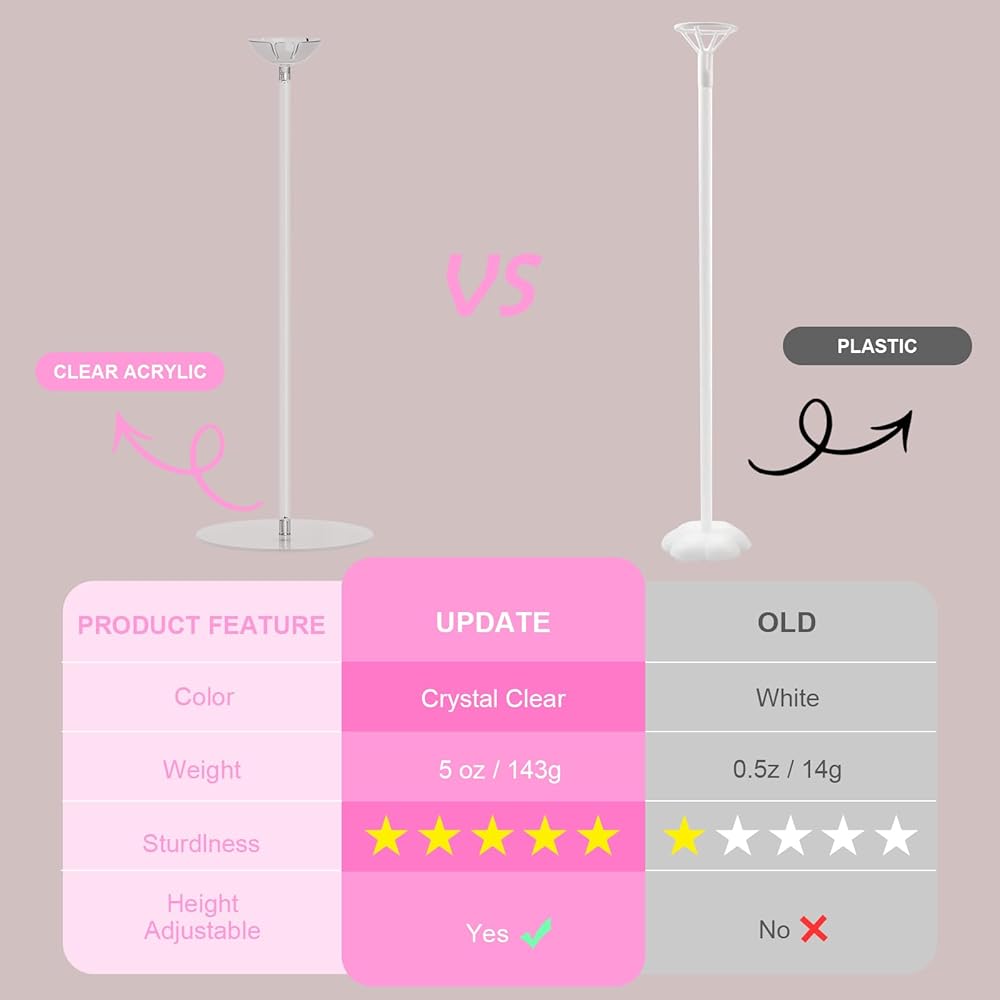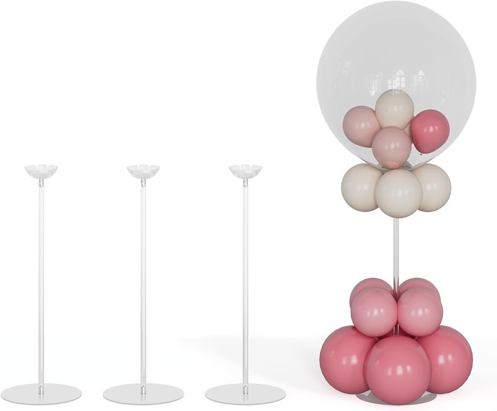 YALLOVE Clear Acrylic Tabletop Balloon Stand Kit, 15.75 Inch 4 pack Balloon Stick Holder with Base for Table Top Centerpiece Party Decoration (Balloons Not Included)