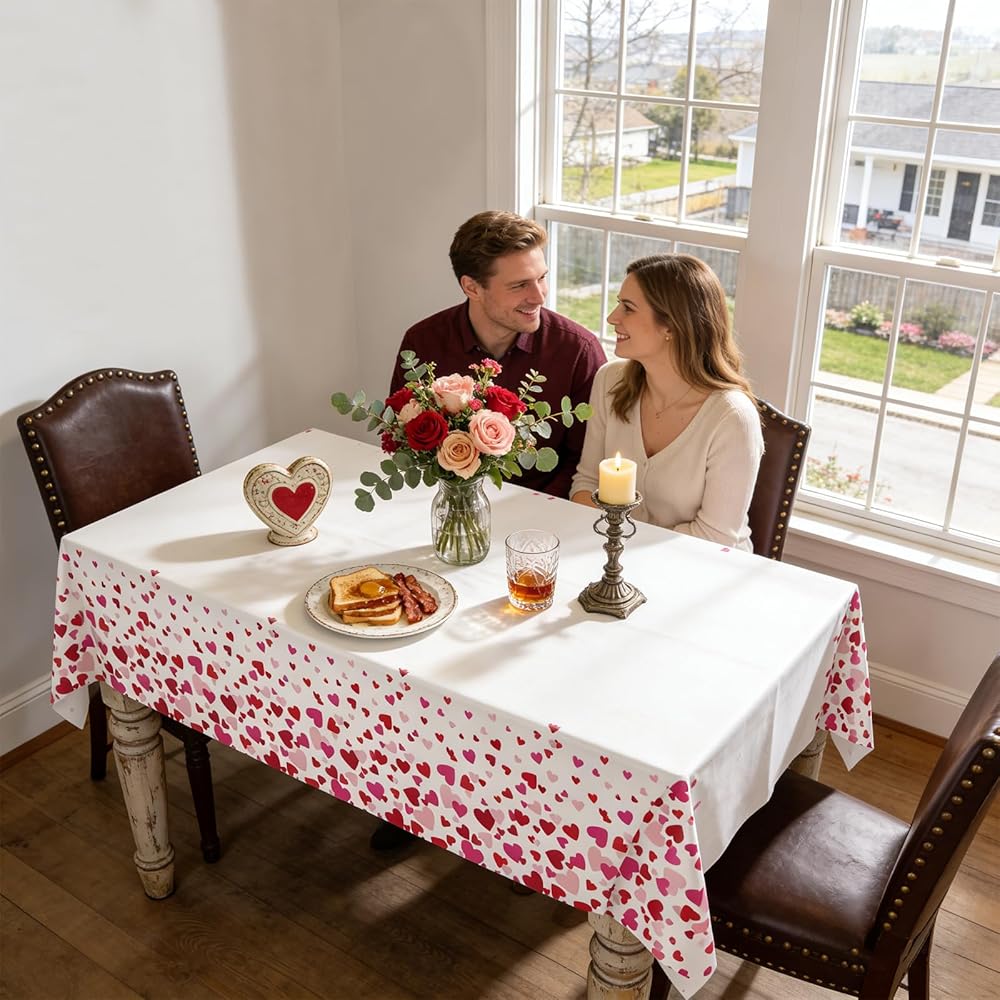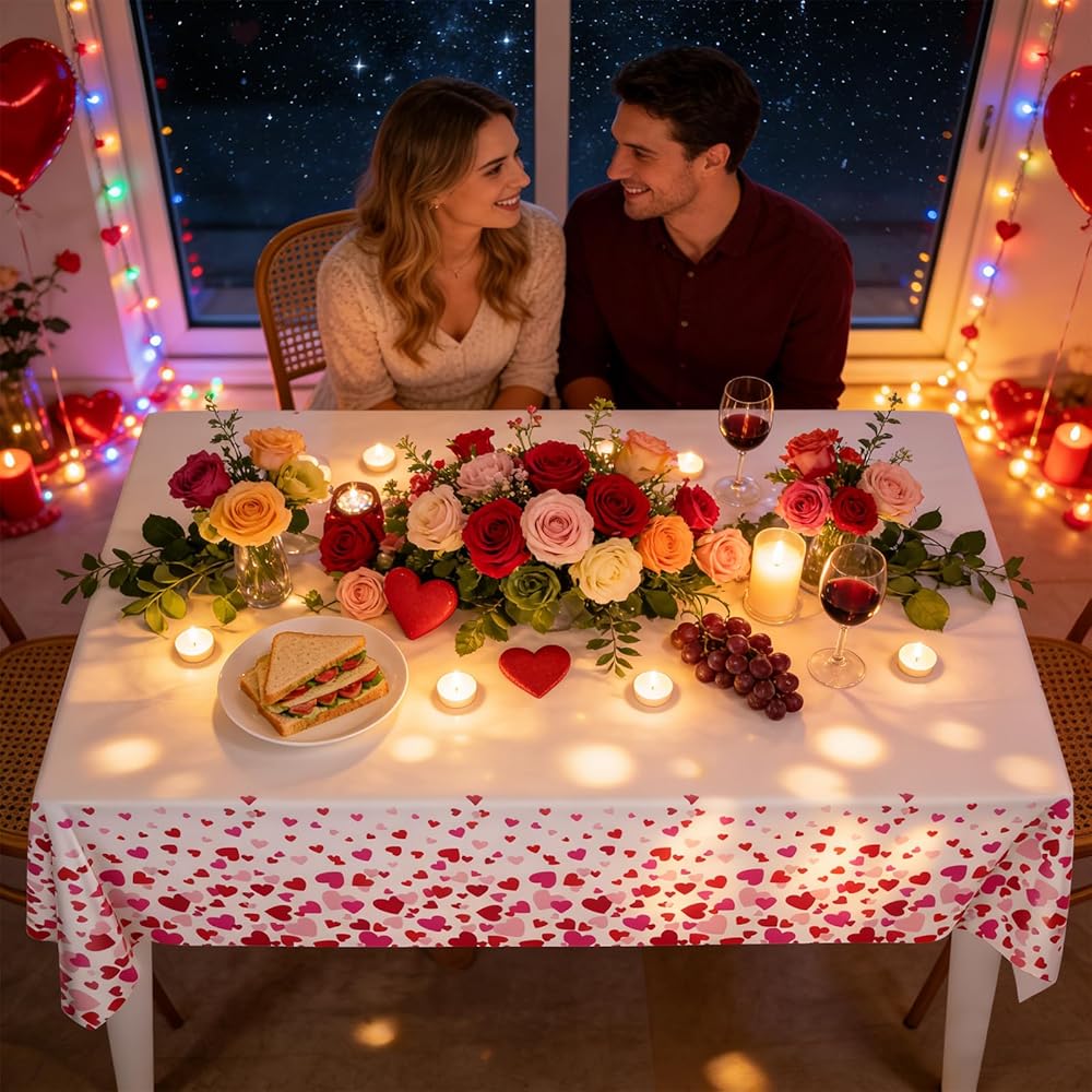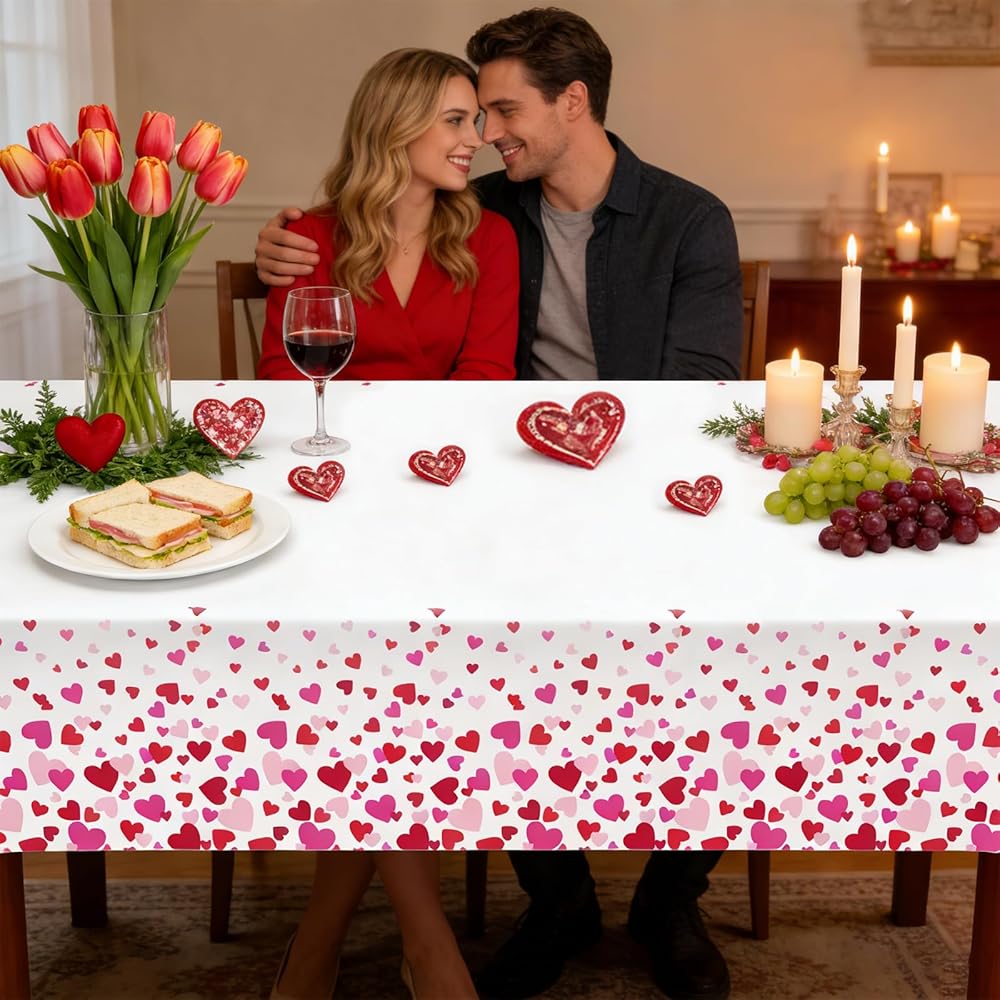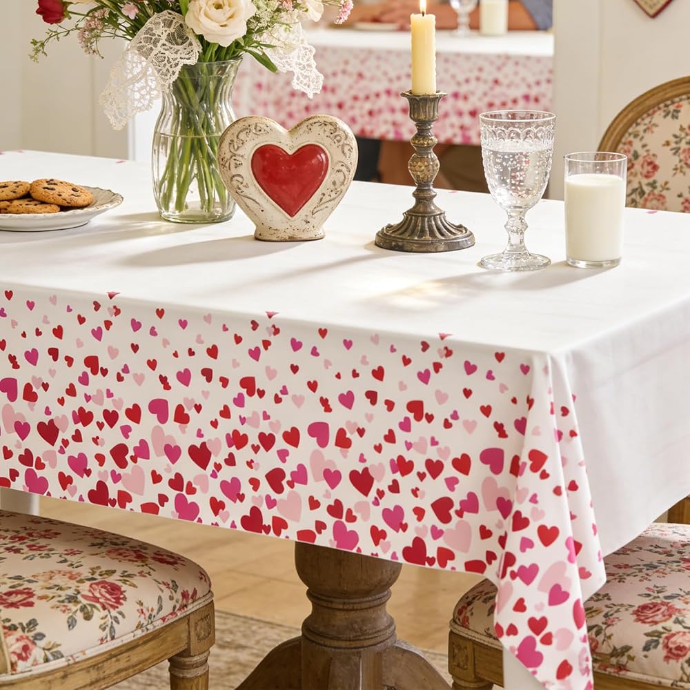 YY Valentines Party Tablecloths Disposable 2 Pieces 108 x 54in Pink Red Hearts Tablecovers