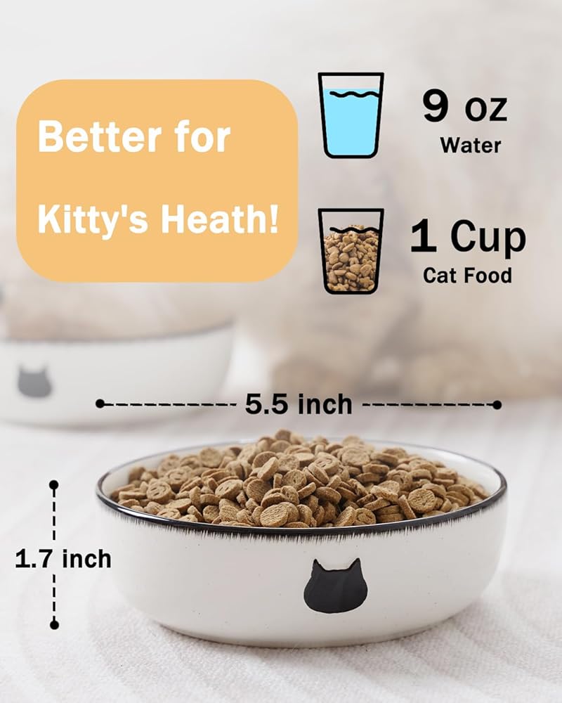 [Easy to Clean and Maintain] Keeping your cat's bowls clean is essential for their health. The smooth glazed surface resists stains and odors, ensuring hygienic mealtimes for your feline companion and also making the cleaning process a breeze