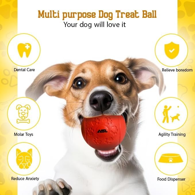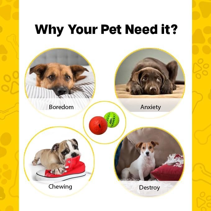 DURABLE RUBBER DESIGN: Flexible rubber ball, ideal for interactive dog toys, dog puzzle toys, and treat-dispensing dog toys. SUPPORTS STRONG TEETH: Enhances dental health, great for puppy teething toys and chew toys for dogs. ENHANCES INTELLIGENCE: Mentally stimulating for dog training, dog enrichment, and puzzle toys for dogs. FUN PLAY: Insert treats for interactive play, perfect for dog treat puzzles and dog stimulation toys. PERFECT GIFT: Reduces destructive behavior, great as boredom toys for large dogs EASY TO FILL: Add food for slow feeding, suitable for dog treat dispensers and treat puzzle toys for dogs