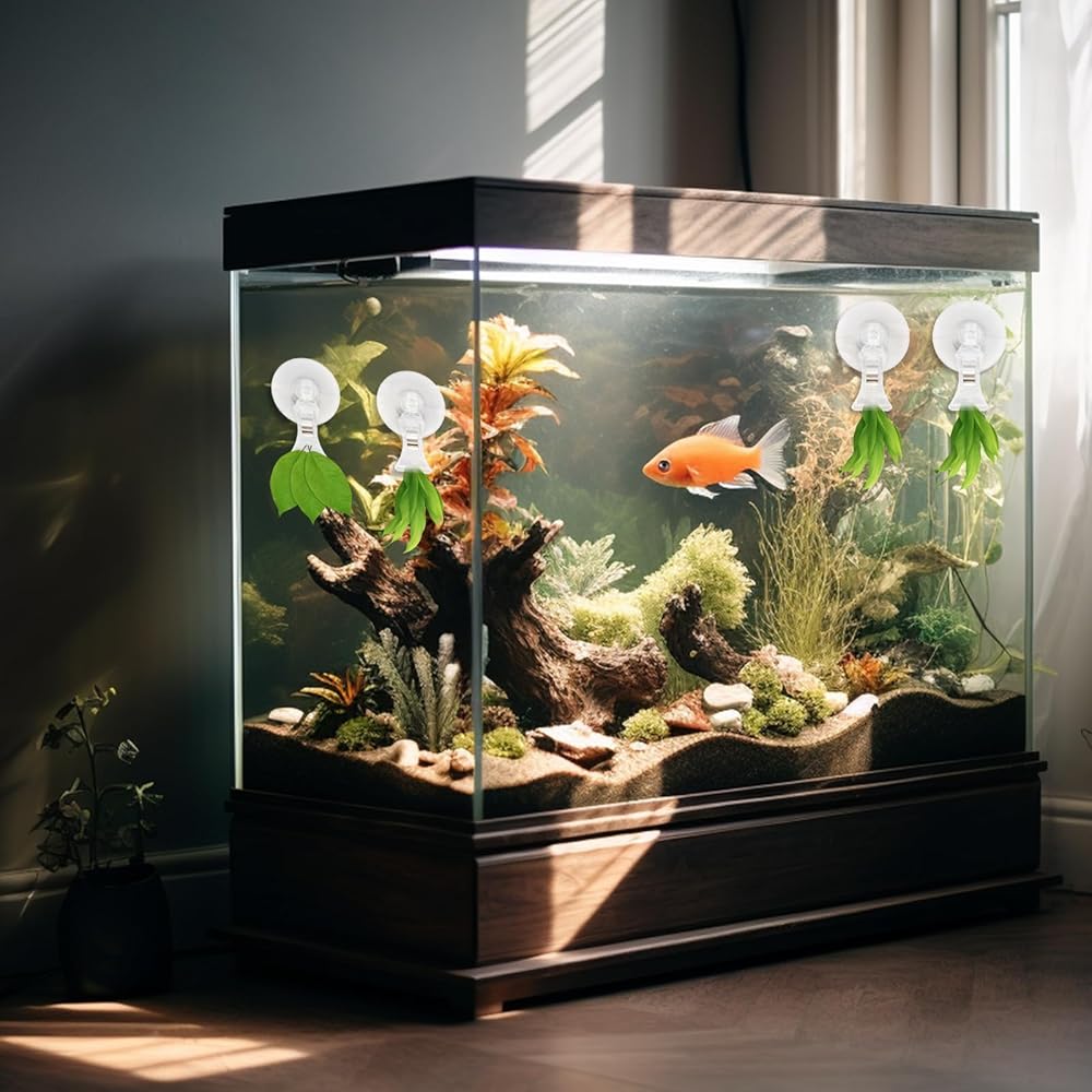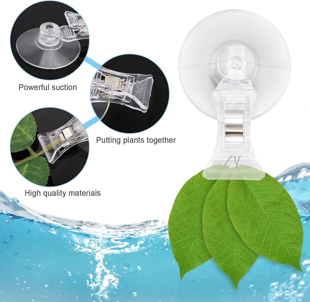 High Quality Material: The seaweed clips suction cups is made of high-quality transparent soft plastics, with strong adsorption ability and easy attachment to the surface of the aquarium. It is safe to use and can be used for a long time
