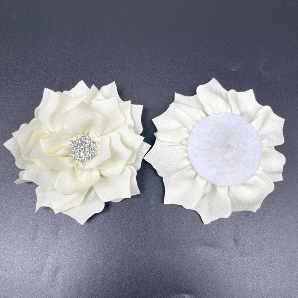 Lmlliang 10PC Beige 3Inch Chiffon Rhinestone Flat-Back Ruffled Fabric Flower for DIY Handmade Making Headbands Hairpin Flower Crafts Party Wedding Decoration