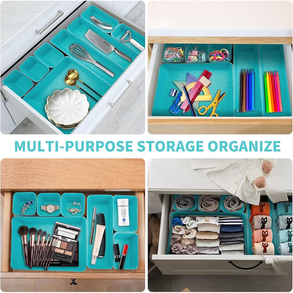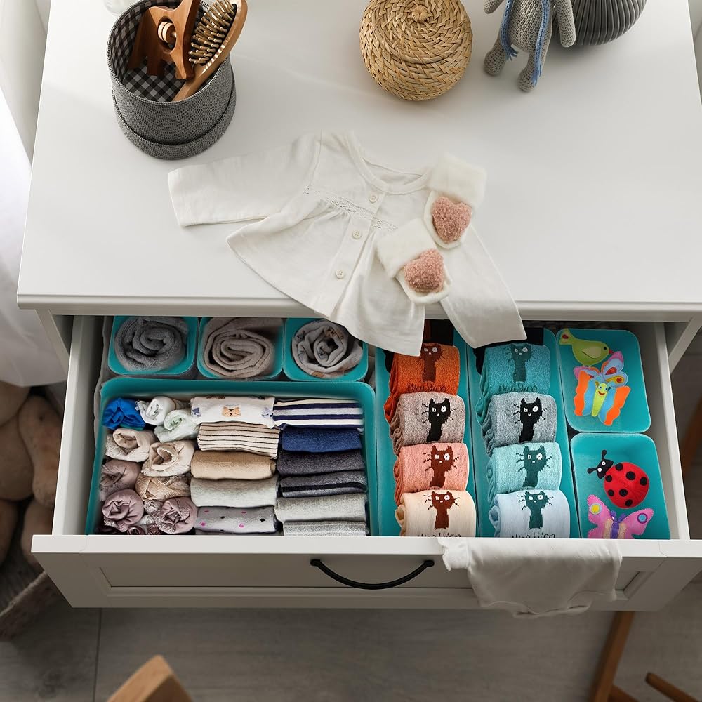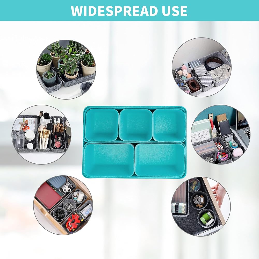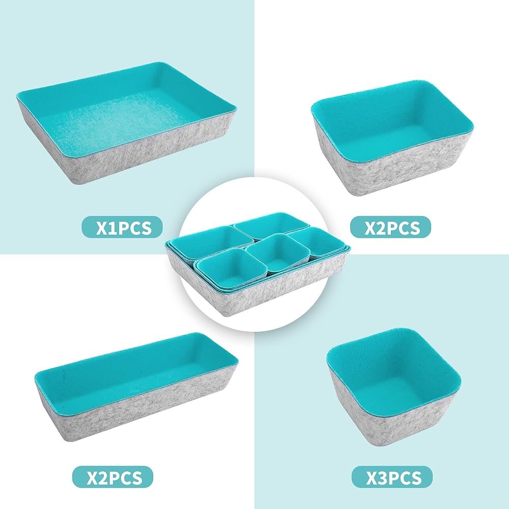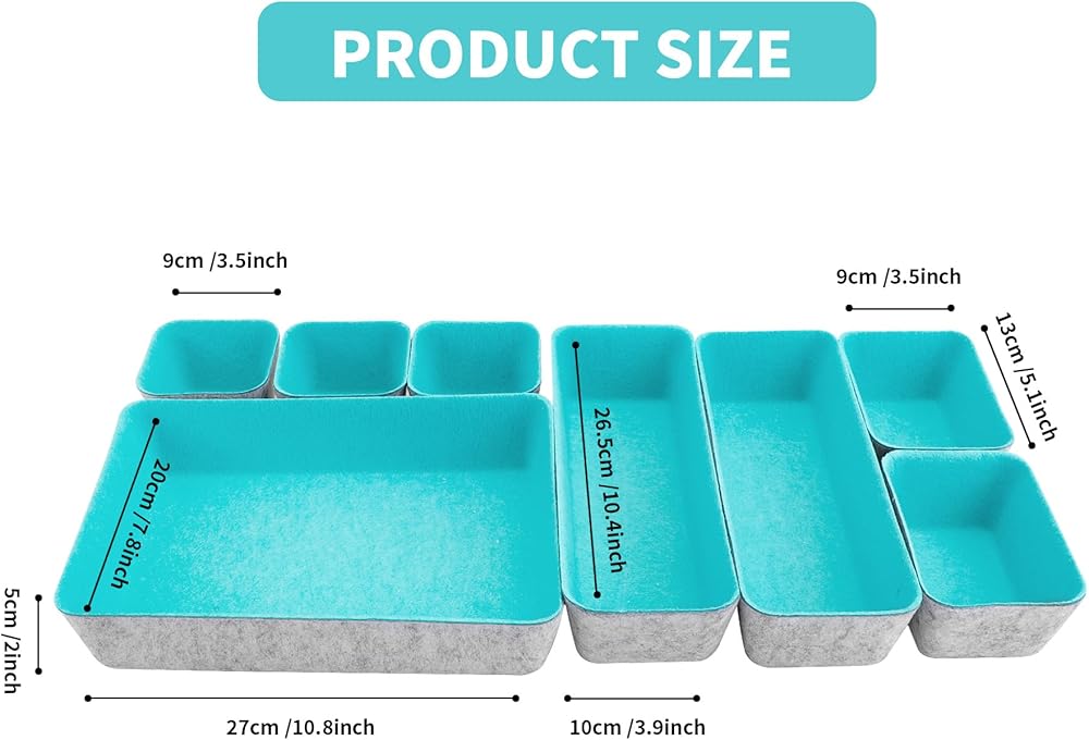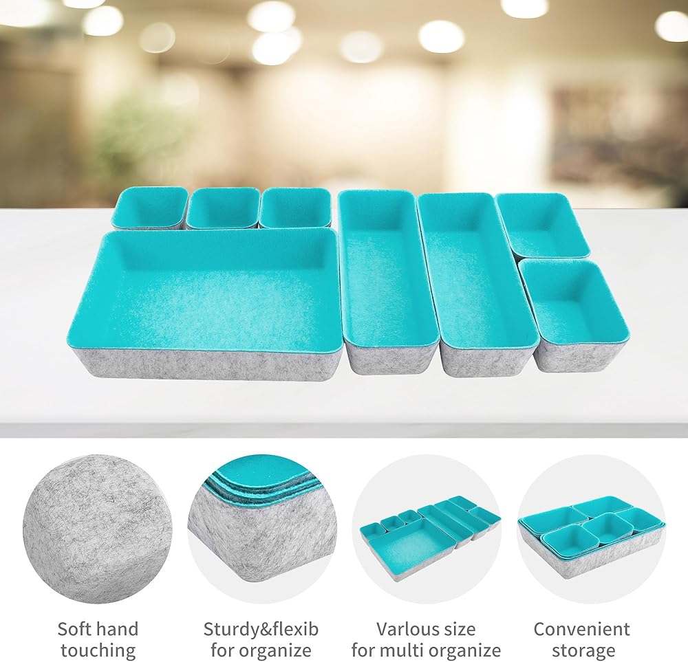 8pcs Drawer Organizers, Separators, Storage Box,Felt Storage Bins Inserts Tool Containers Toy Basket Shelf Cubes Foldable Drawer Dividers Desk Organisers- Blue&Grey
