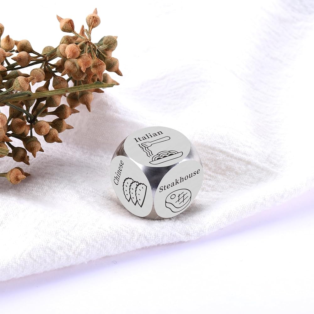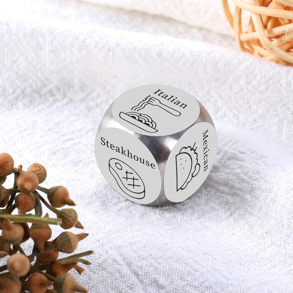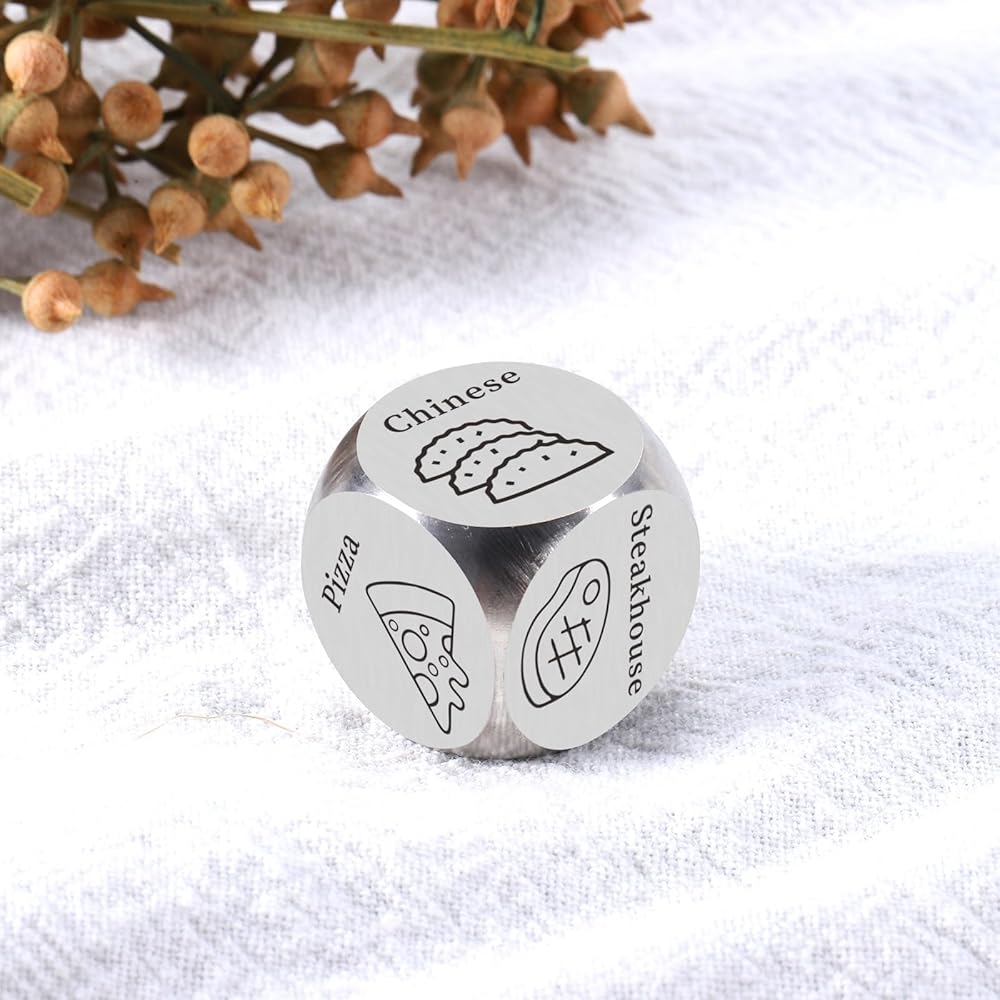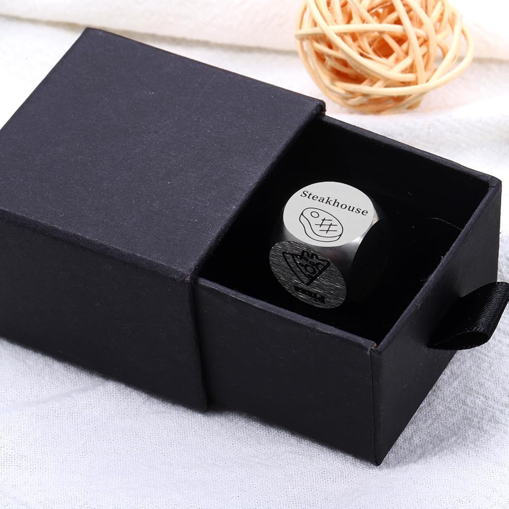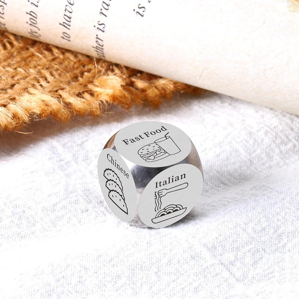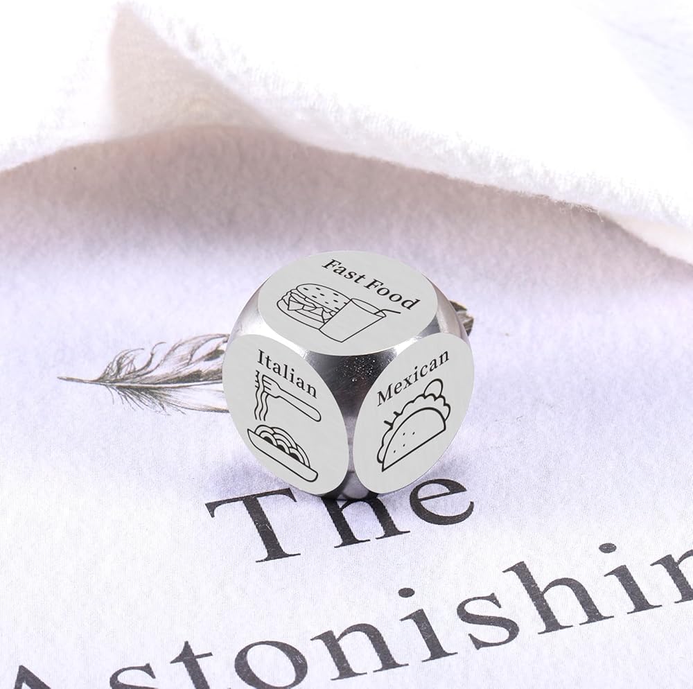 This funny food decision dice with 6 options is the perfect gift for famliy members, couples, friends, coworkers with food choosing difficulties to decide what to eat. Decision dice present that solve your daily problems and bring you more food experiences. If you're on the hunt for the perfect gift for him, consider this wonderful dice for your loved one. It is a unique way to give the dice for women as best gift for men, funny present for sister, holiday gift for adult.