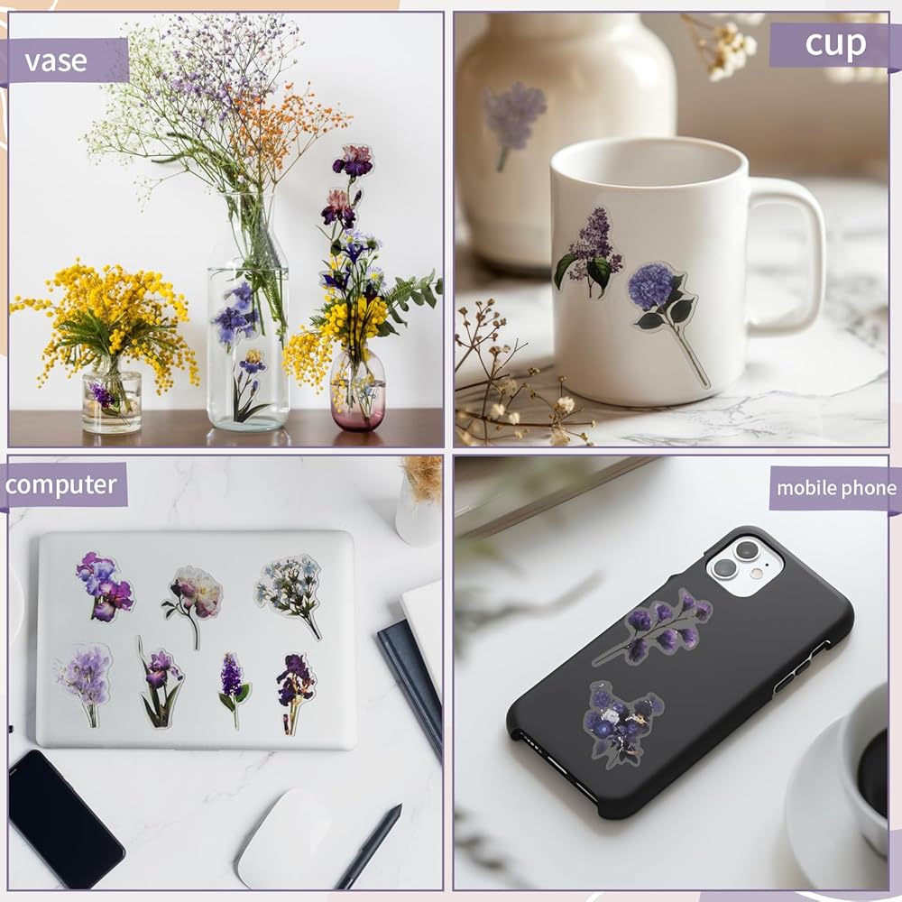 High Transparency: Flower stickers are known for their transparency, and sticky stickers are very sticky, ensuring a firm grip on any smooth, dry surface. They are perfect for decorating your room or book, adding a subtle touch of intrigue and delicacy.
