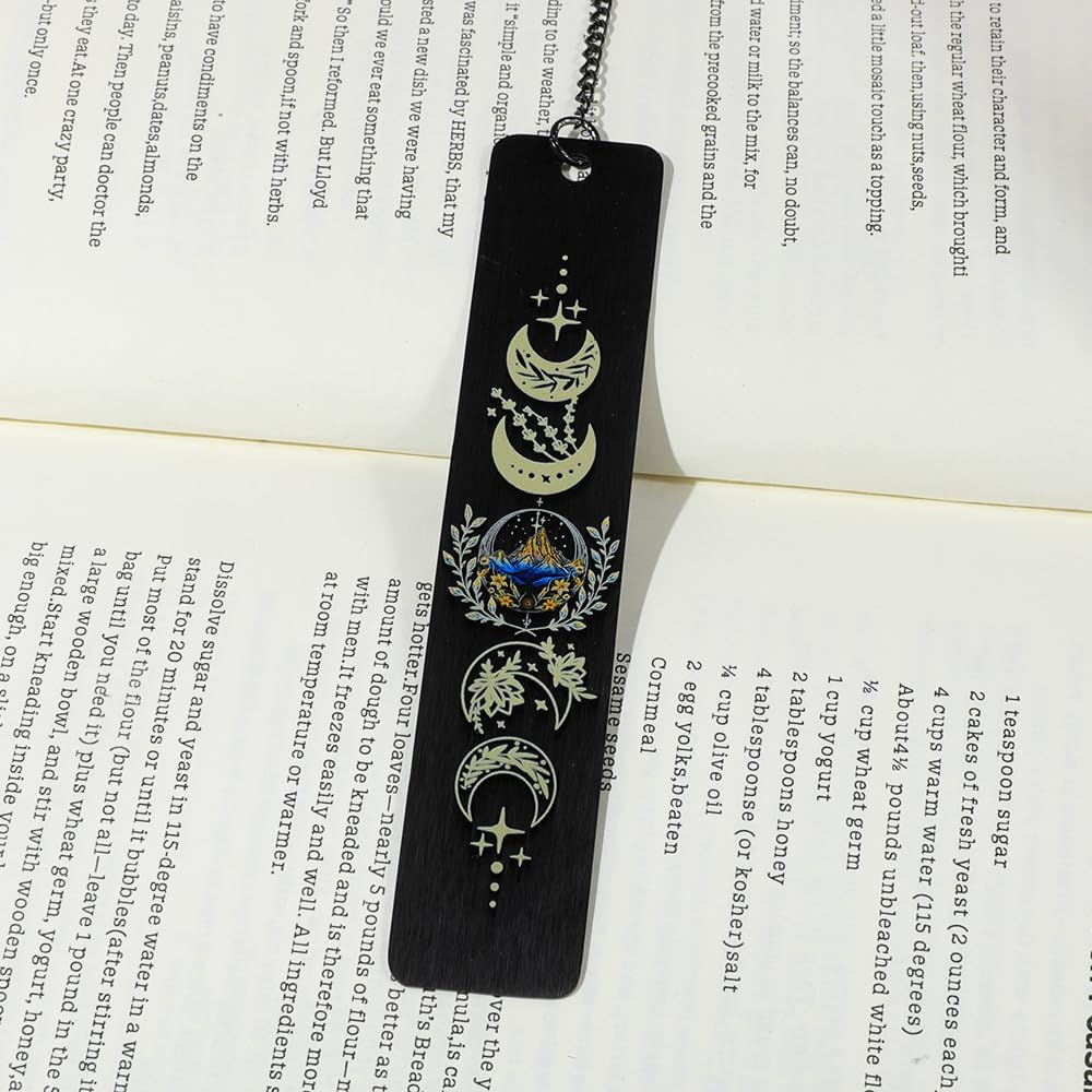 Elevate your reading experience with the Moon and Mountains Stainless Steel Bookmark. This exquisite metal bookmark features a captivating design inspired by the celestial beauty of the moon and majestic mountains. Crafted from durable stainless steel, it's built to withstand the wear and tear of daily use. The delicate chain tassel adds a touch of elegance, making it a thoughtful gift for book lovers and avid readers alike. Whether you're curling up with a classic novel or diving into a new literary adventure, this bookmark will be your trusty companion, marking your place with style and sophistication. Its sleek and compact design ensures it won't distort or damage the pages of your cherished books. Treat yourself or someone special to this functional and aesthetically pleasing reading accessory