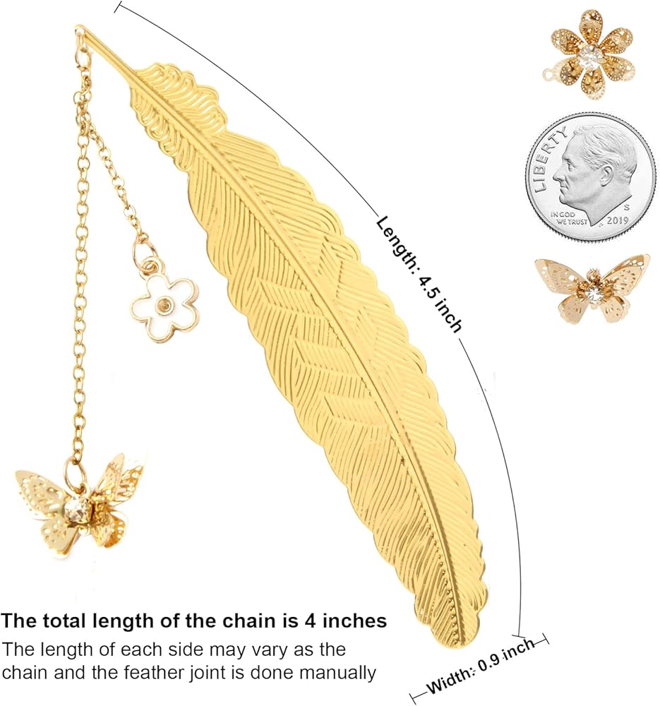 <p>CUTE & UNIQUE - The feather size is 4.5 *0.9 inches, and chain length is about 4 inches in total. With exquisite pendants, the book markers are novelty and lovely. </p>