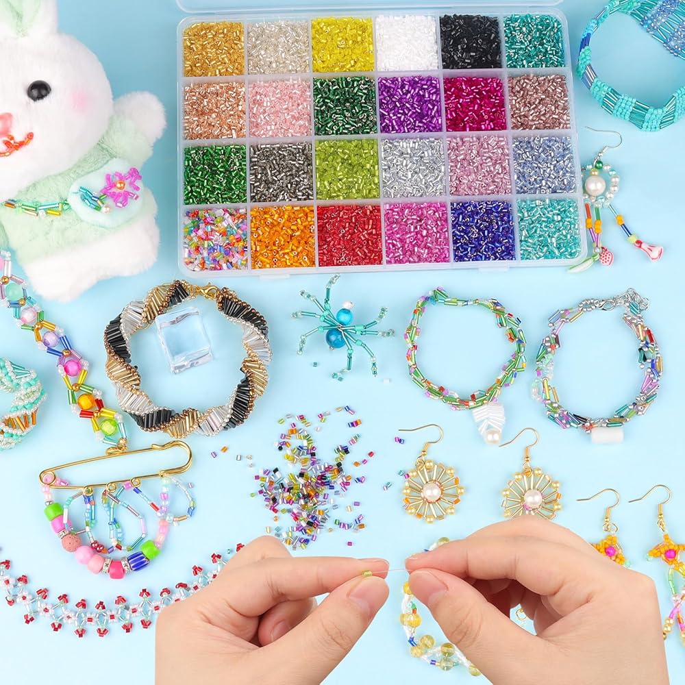 High-Quality Bugle Beads for Bracelets: Made of high quality durable and sturdy of glass. Symmetrical with shiny luster won't fade in water, Uniform shape and consistent color. It is the best choice to DIY kinds of jewelry projects.