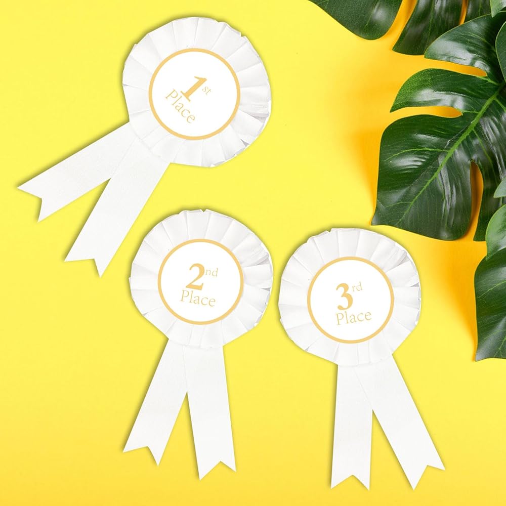 ✅ Proper Size to Apply: these prize rosettes ribbons are appropriate in size and light in weight, can be firmly attached to clothes without burden others, the upper parts of them feature flower shapes, and the bottoms have ribbons, combined with the corresponding rankings, can easily attract others' attention at first sight, and make you become the focus once wearing them