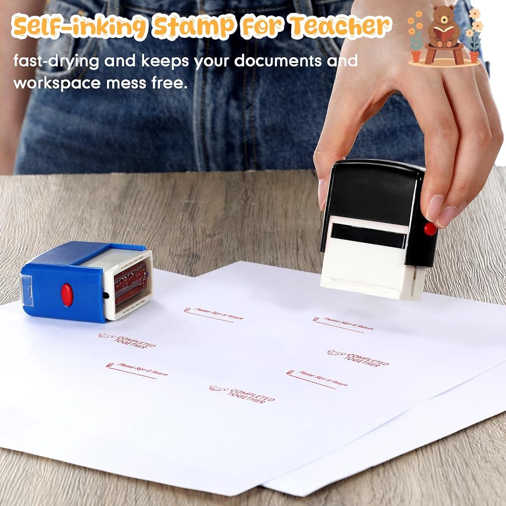 Application for Various Educational Settings: these sign and return stamps are ideal for a range of educational environments, these stamps are suitable for use in classrooms, tutoring centers, daycare facilities, and homeschool settings; These self inking stamps for teacher make stamping quick and convenient, whether you're marking homework assignments, tracking completed work, or requesting parental feedback