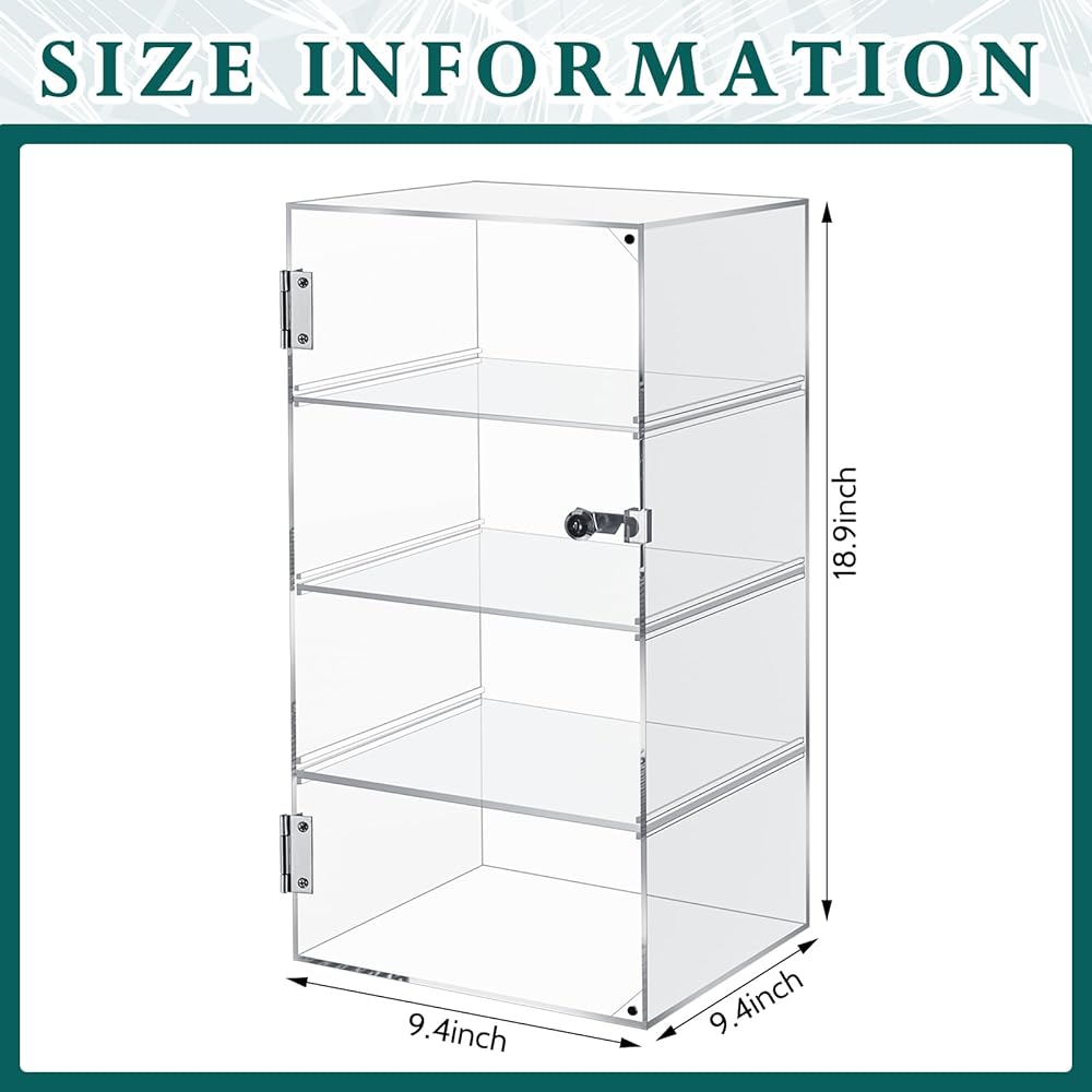 Ample Storage and Display Space: with its about 9.4 x 9.4 x 18.9 inches/ 24 x 24 x 48 cm dimension, this clear acrylic display case with 4 evenly divided internal storage layers offers ample storage and display space; Ideal for a wide array of small to medium size collectibles and memorabilia, it's the good storage and display solution for hobbyists and collectors