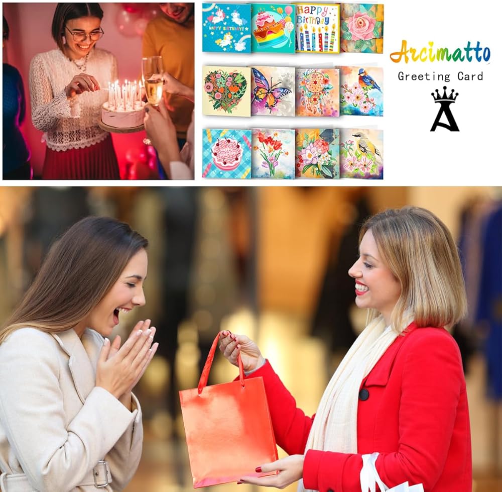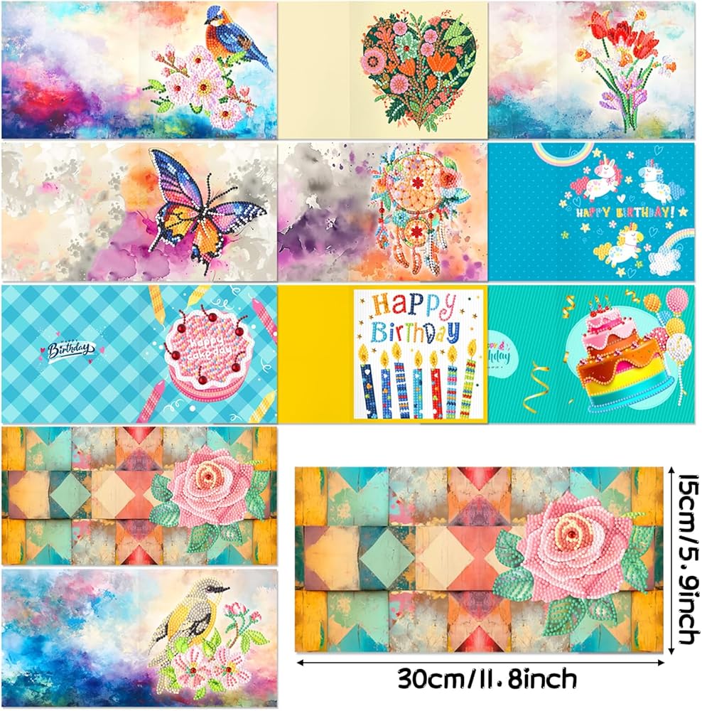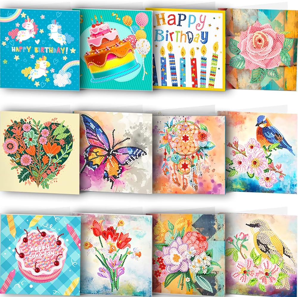 Arcimatto 12 Pack Diamond Painting Kits Greeting Card Flowers Birds Butterflies 5D Painted Card DIY Art Craft Set Thank You Cards for Birthday Christmas New Year Thanksgiving Day Creative Gift