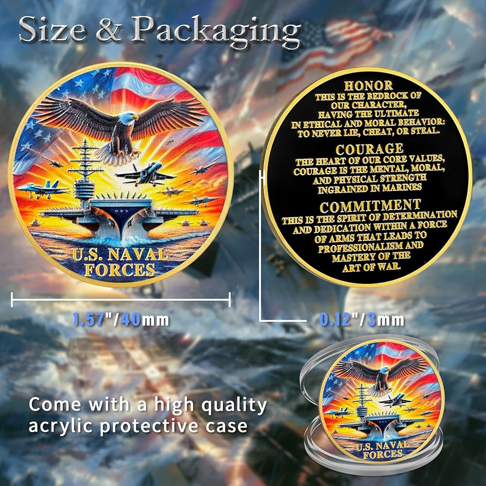Premium Quality & Ideal Dimensions: Military Challenge Coins crafted from high-quality zinc alloy with an iron gold finish, the Freedom and Independence Coin features vivid colors, intricate engravings, and exceptional durability. Measuring approximately 1.57 inches (40mm) in diameter and 0.12 inches (3mm) thick, weighs about 1.4 ounces, easy to carry. Each coin comes with a premium transparent protective case for secure storage and gifting
