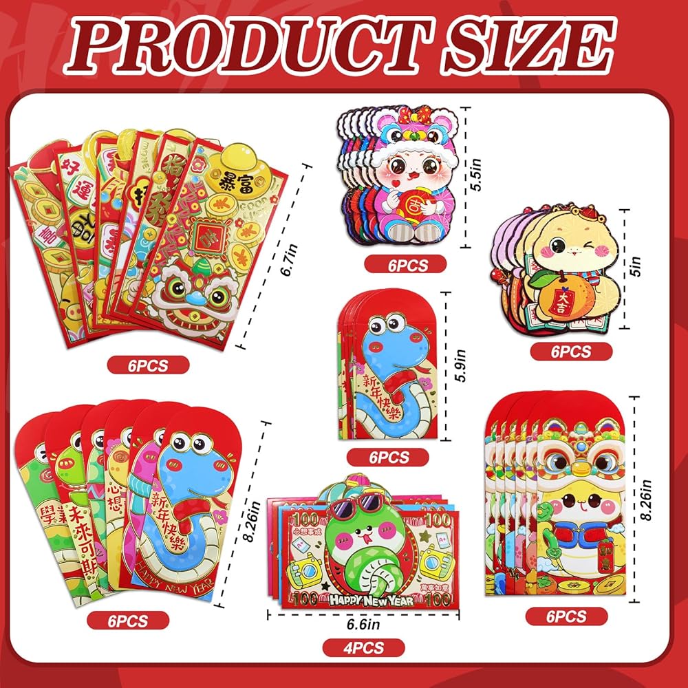 Different styles with cute pattern, exquisite style, please look at pictures carefully for detailed style information, Chinese believed that this red envelope will bring luck to the person, it can satisfy your many needs in 2025.