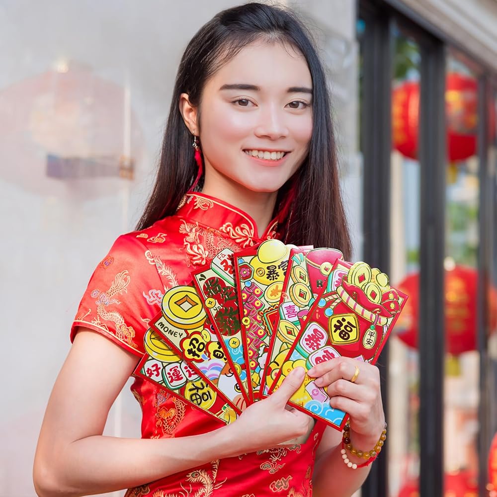 These Chinese lucky packets are believed that can bring happiness, good fortune, health, wealthy and so on, you can fill them with money and coins as gift for your loves, suitable for 2025 Chinese New Year, wedding, graduation, birthday party, visiting relatives and more important occasions.