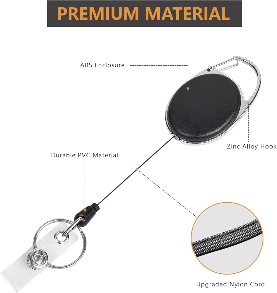 Retractable Reel: The built-in retractable reel mechanism ensures your ID badge is always within reach while keeping it neatly tucked away when not in use.