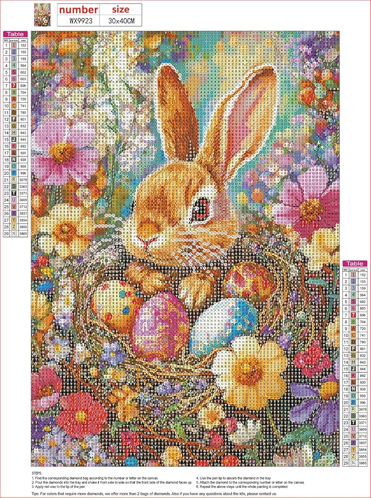 MXJSUA Bunny Diamond Painting Kits for Adults, 5D Easter Eggs Diamond Art Kits for Beginners, DIY Full Drill Paint with Diamond, Home Wall Decor 12 x 16 Inch