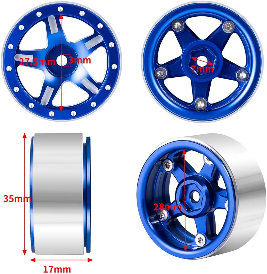 - Package Includes: 4Pcs 1.3 RC Wheels for 1/18 TRX4M Redcat Ascent 1/24 SCX24 RC Crawler Car
