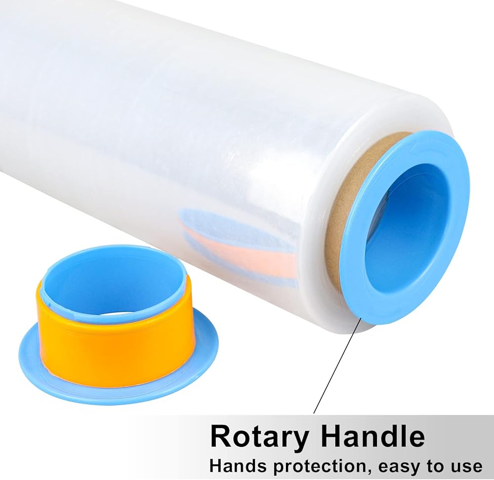 Easy to Use: This stretch film comes with 2 rotatable plastic handles, which saves time and effort and reduces the damage to your hands during the packaging. It helps protects things, keep them together, keep them sealed, and generally acts as an easier-to-use/not-as-destructive stand-in for tape in many cases.The plastic roller makes it so easy to use. Clear Shrink Wrap Film is Perfect For Safely Collating, Bundling and Securing all Types of Items