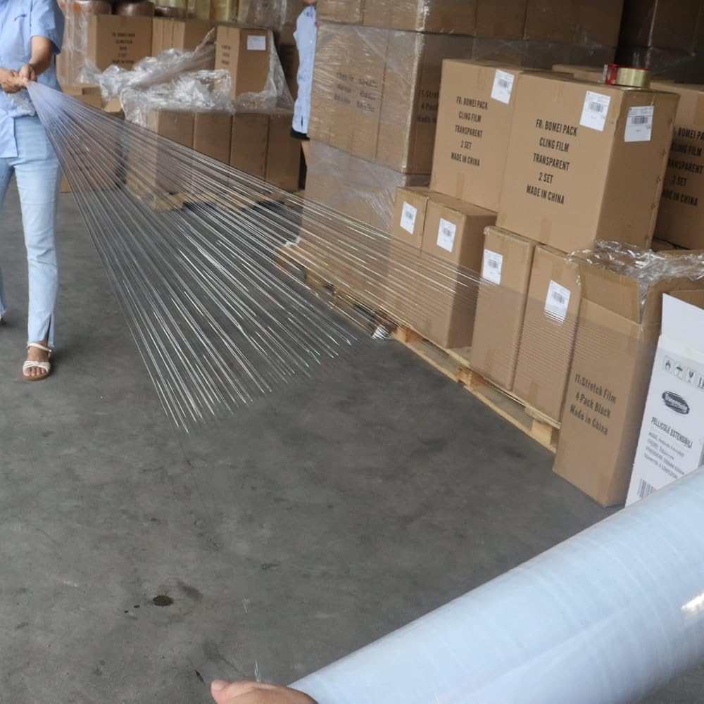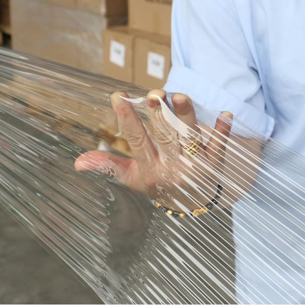 Multipurpose Use: Whether you're wrapping pallets for cargo or moving furniture, this stretch wrap film is ideal for items to protect while moving. You can use our stretch film for packing of various things, like boxes and logistical needs. Clear non-adhesive plastic wrap secures and bundles Items. You can use this for the garage and some warehouses. Shrink wrap has glossy and slippery outer surfaces onto which dust and dirt can't cling. Plastic wrap prevents sticking of pallets to each other