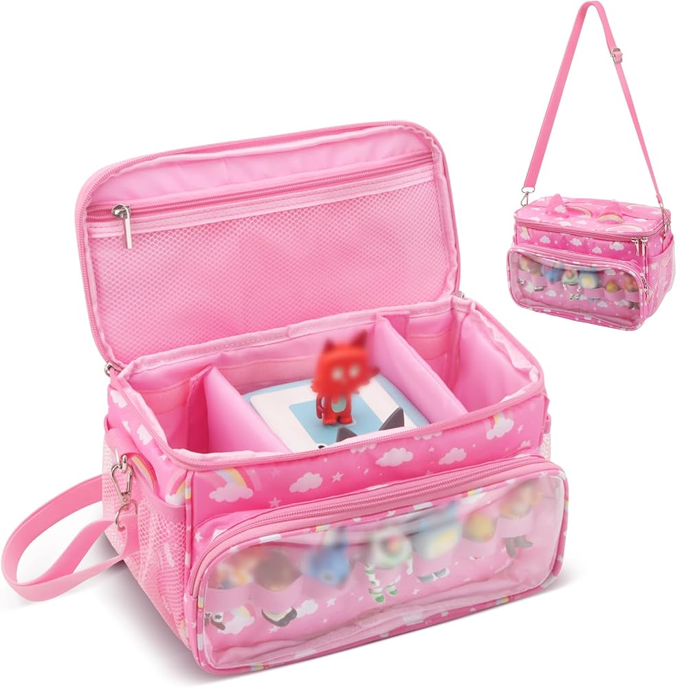 【Easy to Carry】This carrying case for tonie with removable strap and handle, The main compartment includes a removable divider, you can adjust the interior space distribution of the bag according to your needs,making it easy for kids to carry a toniebox, tonie figures wherever they want to you.