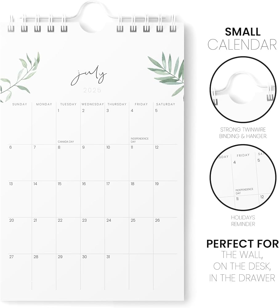 BOOST YOUR PRODUCTIVITY: With the minimalist small wall calendar 2025-2026 (6" x 9"), staying organized and on top of things is a breeze! At a glance, see all of your appointments, deadlines, birthdays, US & CA holidays, and other important occasions.