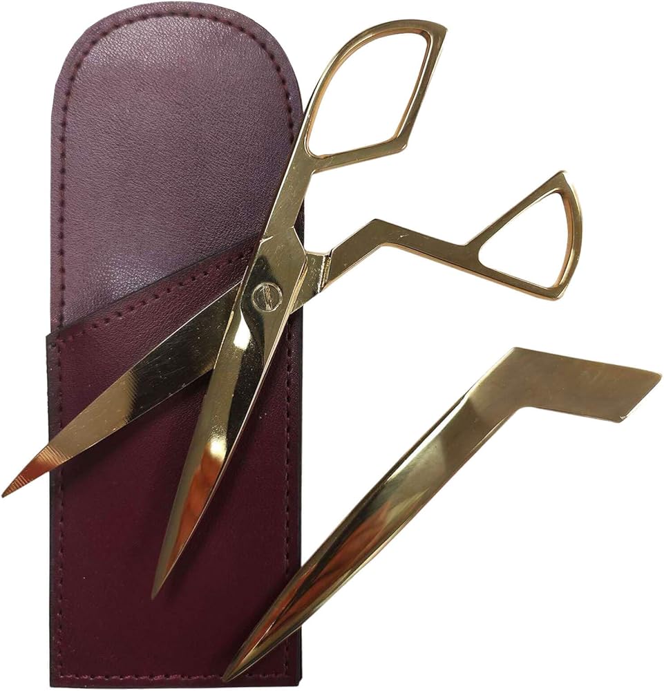 DACASSO Burgundy Bonded Leather Mini Library Set- Made in Italy - Luxury Executive Decor and Office Essential - Gold-Plated Polished Letter Opener and Pair of Scissors.