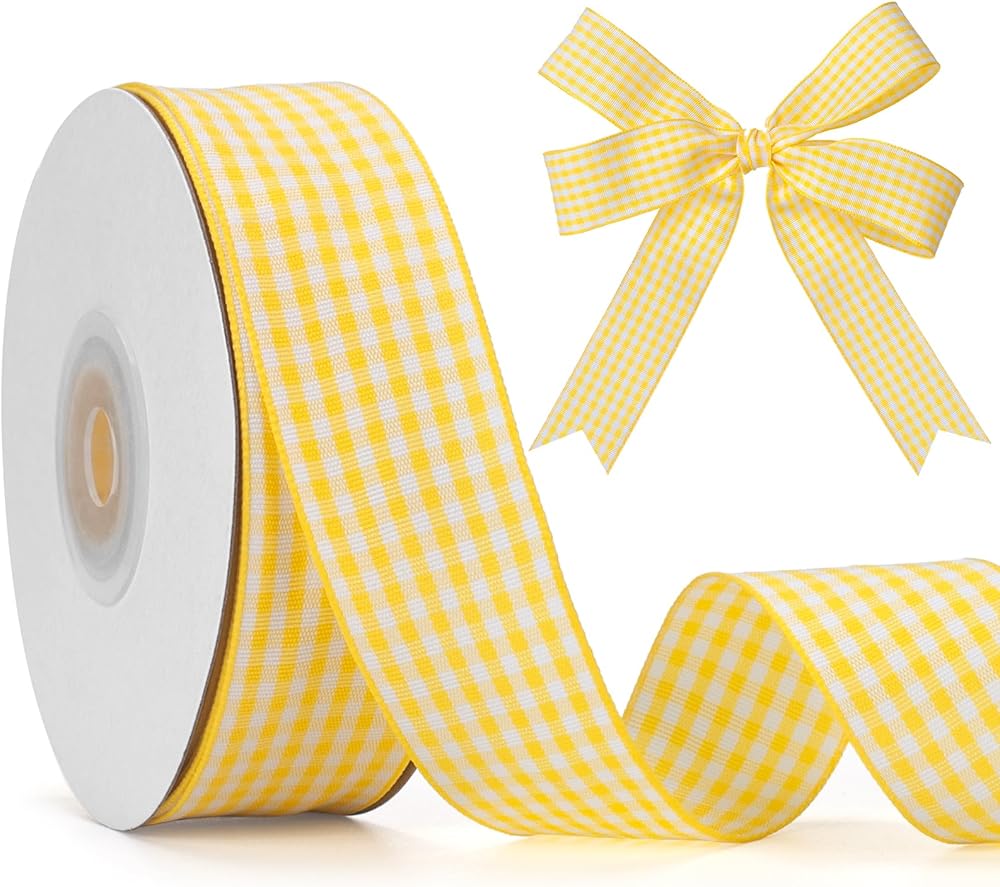 Size: Red and white gingham ribbon Width: 1 inch, Length: 25 yards. our wide red gingham ribbon are good for meeting all your creative needs.