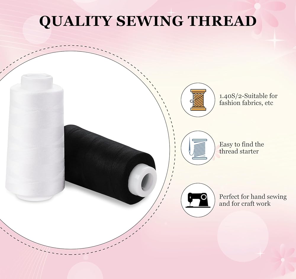 【Reliable and Soft】Crafted from 100% 40S/2 polyester, this sewing set offers the durability of polyester, a soft texture, and a matte finish akin to cotton. It is not only long-lasting and colorfast but also resistant to dust. Whether sewn by hand or machine, it maintains its integrity without cracking or breaking, ensuring enduring quality. Note: Avoid prolonged exposure to sunlight.