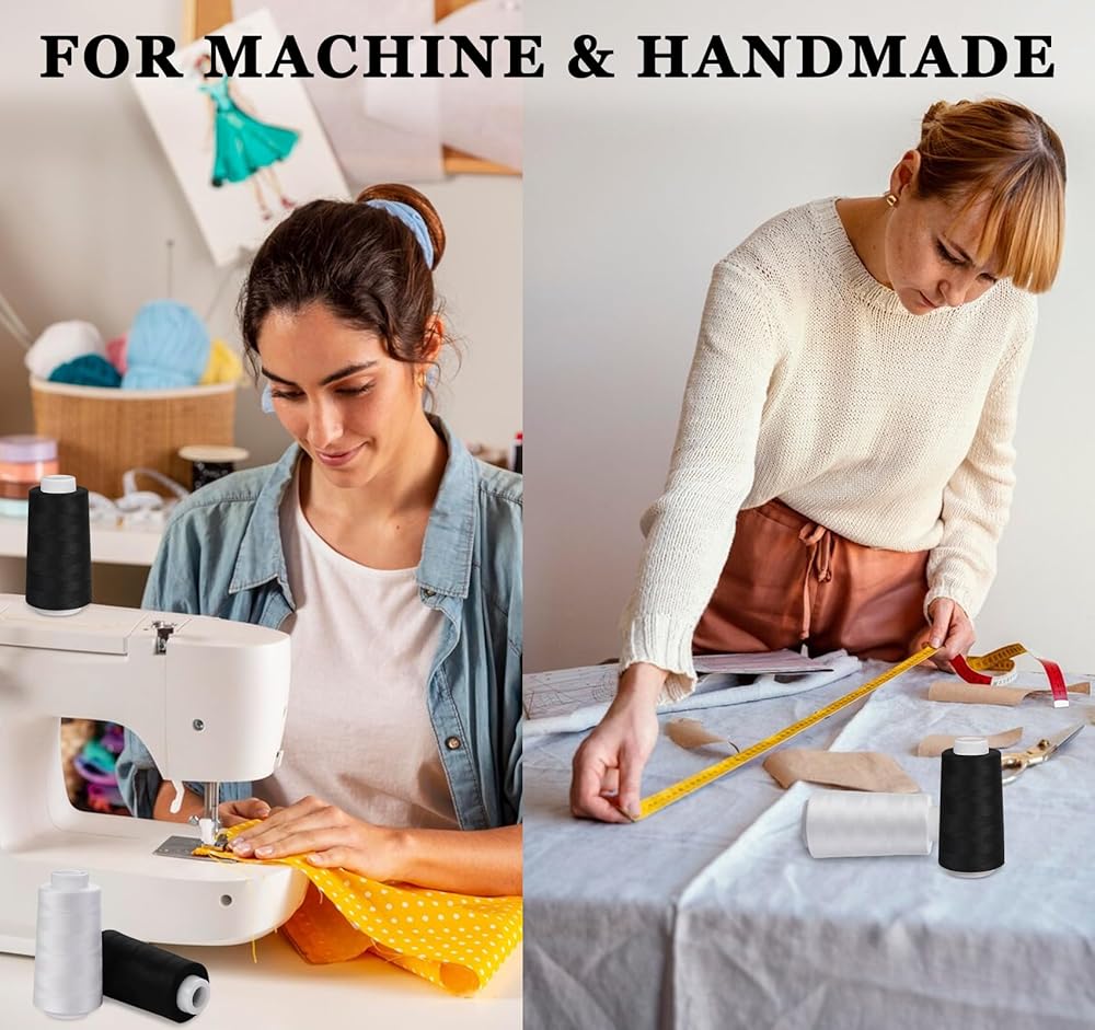 Thread for Sewing, 4 Pack White & Black Polyester Serger Threads for Sergers Machine, All Purpose Sewing, Quilting Machines & Hand Embroidery (3000 Yards Each, 40S/2)