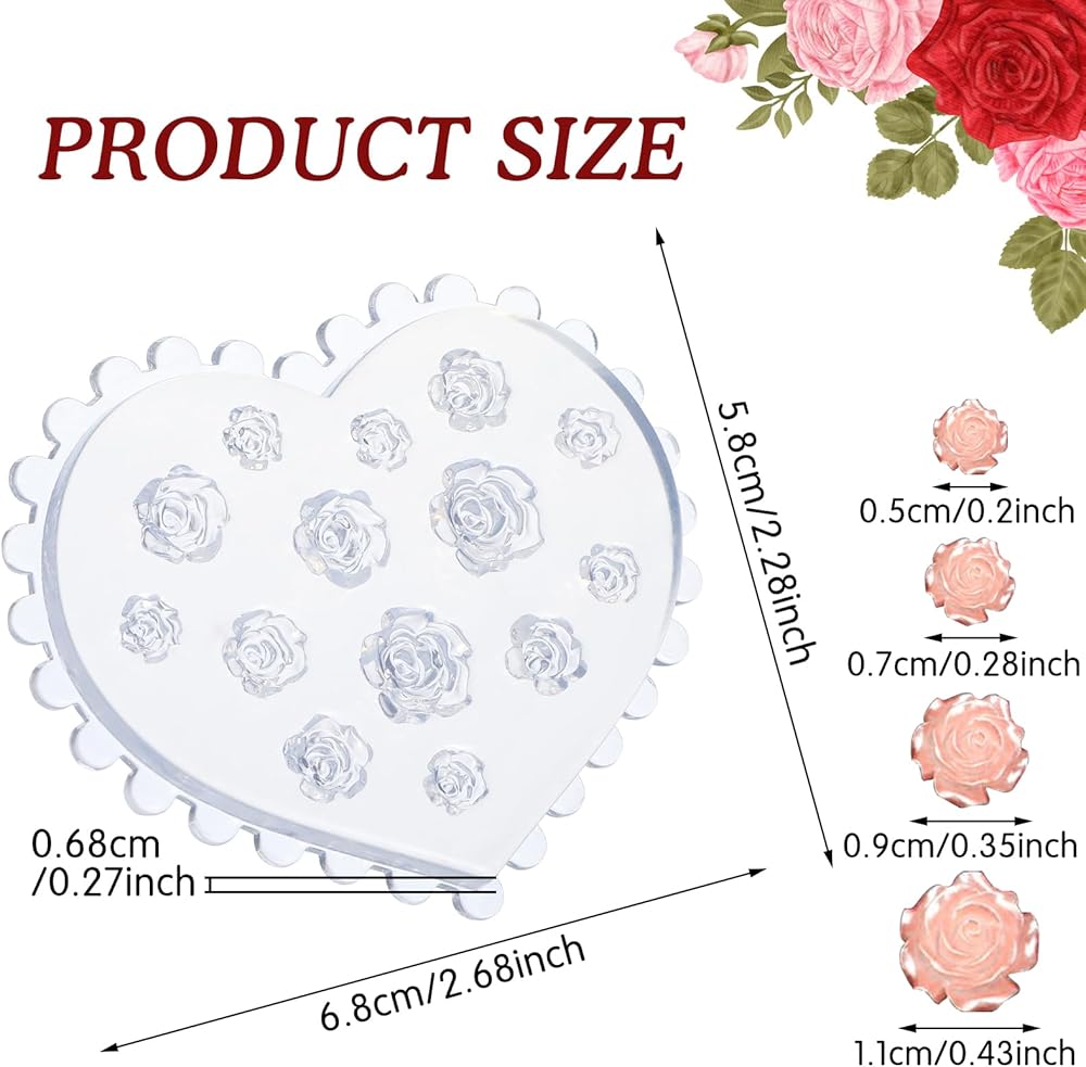Size: Our 3D nail art molds are transparent heart shape, with a size of about 6.8×5.8×0.68cm/2.68 x 2.28 x 0.27 inches, and a single mold can make 14 flower decorations of different sizes