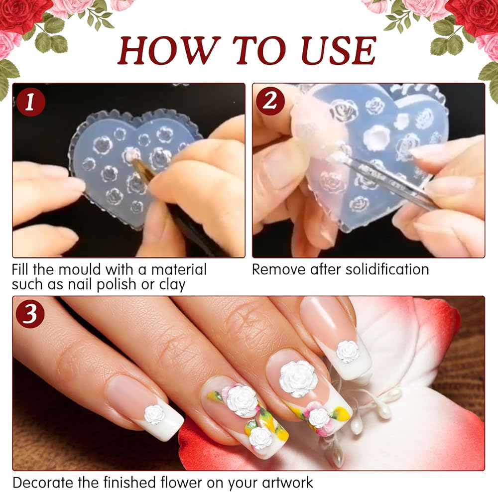 3D Flower Silicone Mold: The special 3D design of the nail art silicone mold brings a delicate sense of layering, making each flower decoration like a miniature work of art, adding a more realistic three-dimensional sense to your manicure