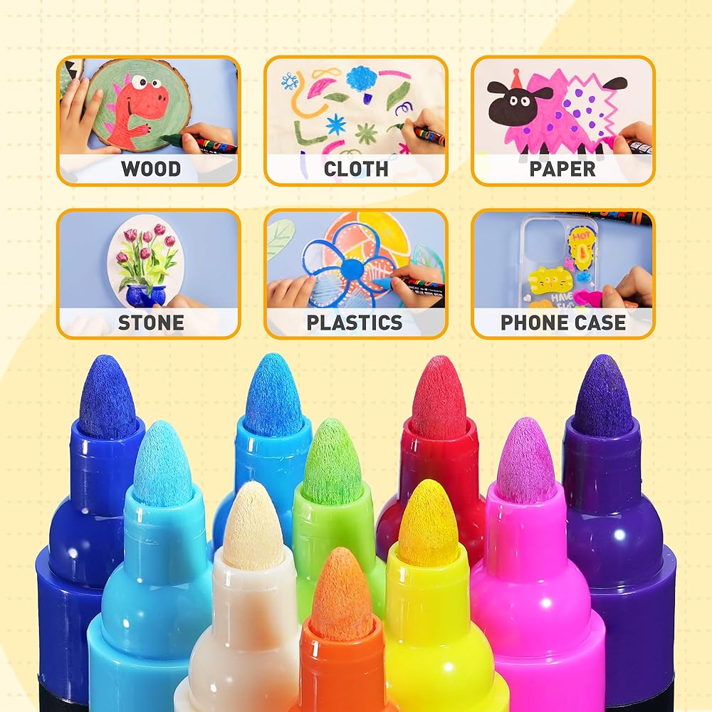 Bright, Safe, and Non-Toxic: Enjoy a palette of vivid, attractive colors that are odorless and non-toxic, making this paint pen particularly safe and suitable for children's use, encouraging creativity without compromising on safety