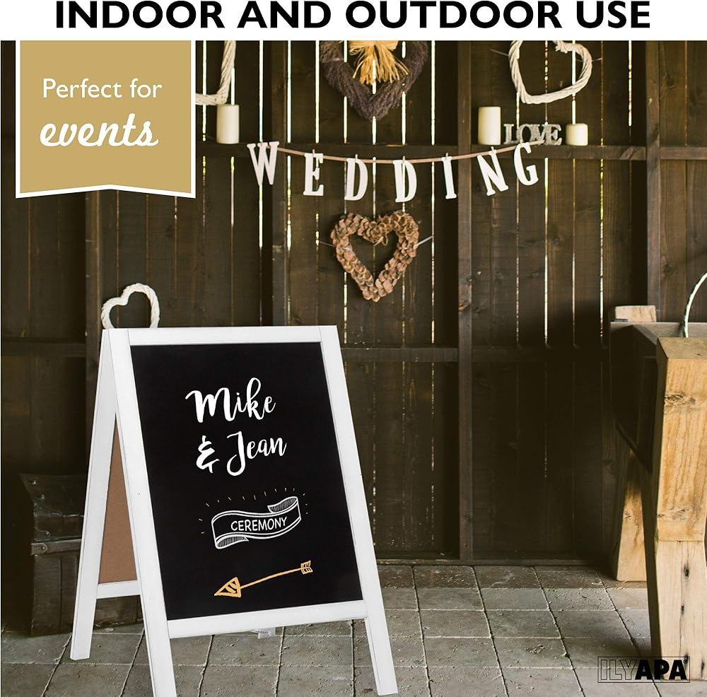 INCLUDES ERASER: This elegantly crafted wooden a-frame sign comes with a magnetic eraser. Additionally, the 100% non-porous surfaces can be repeatedly written on and wiped with a moist cloth without producing ghosting or stains.