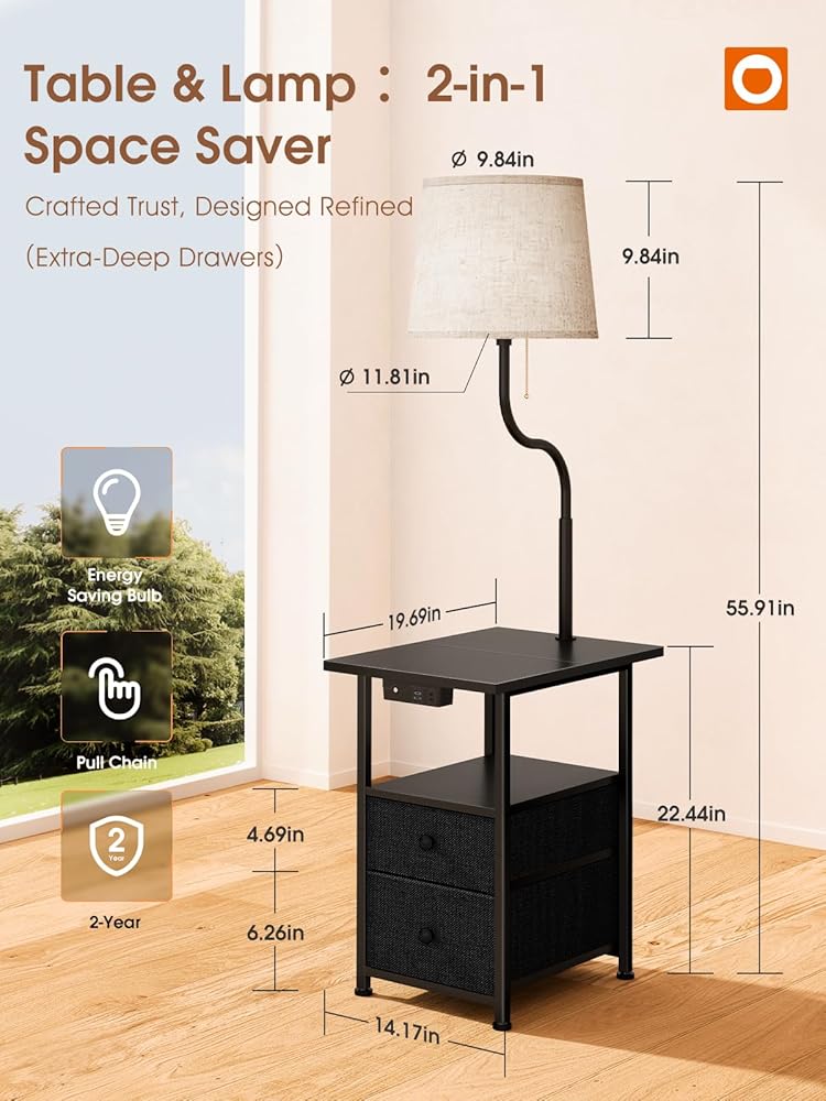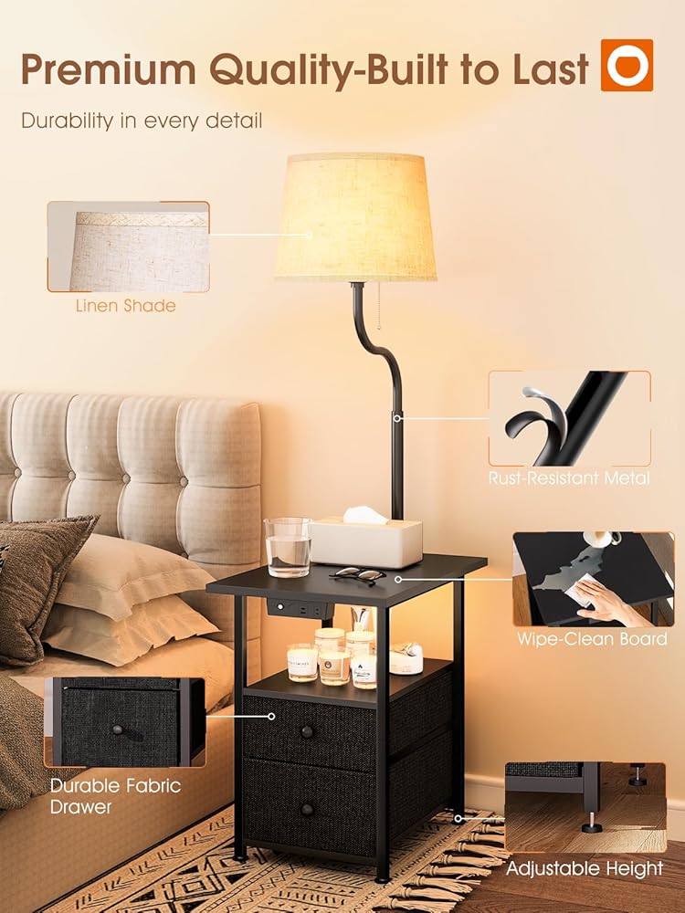 Versatile 2-in-1 Design: This innovative piece combines the practicality of a nightstand with the functionality of a floor lamp. Perfect for placement beside your sofa, the lamp can also be detached and used separately as a standalone end table.