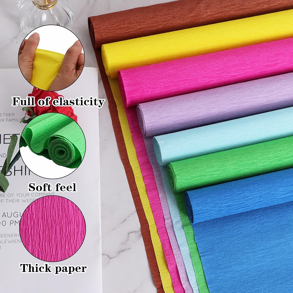【Quality】The crepe paper is made of high-quality paper, which is not easy to tear or fade, and is soft enough, so you can also cut them into the size or shape you want.