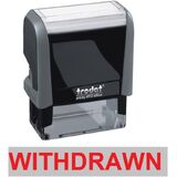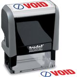 Self-inking stock stamp with the phrase "Void" featuring a 2-Color Blue/Red ink pad. For best results, use Trod at 6/4912 2-Color replacement ink cartridges. Features a water based ink, not suitable for glossy/photo paper.
