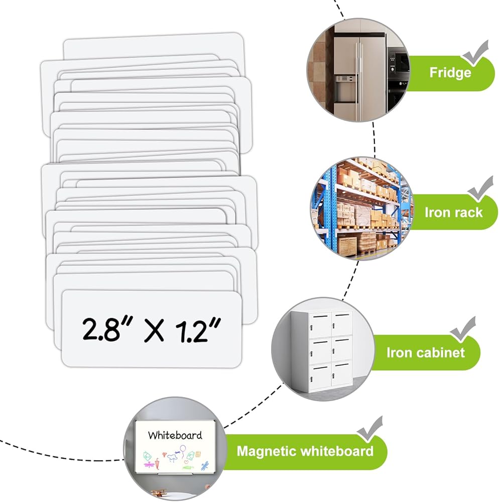 Dry erase magnet labels are suitable for whiteboards, refrigerators, warehouse shelves label racks, name magnets, magnetic labels, etc., the application is very wide.