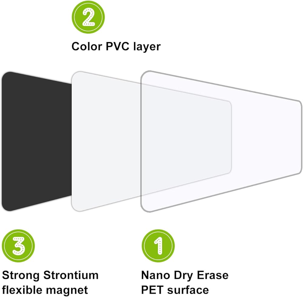 Reusable magnetic labels The surface is made of PET dry erase film, dry erase magnetic labels writing smoothly and easy to erase.