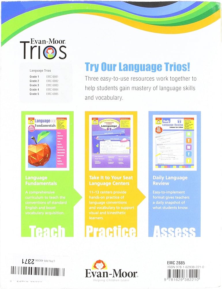 This comprehensive teaching resource helps fifth grade students master the conventions of standard English and boosts their vocabulary acquisition. Easy-to-scaffold lessons are clearly organized by language skills and standards to help teachers target instruction. Language Fundamentals has 207 pages of skill-based activities, including 23 Review pages with multiple choice, constructed response, and open-ended questions to assess students' understanding and application of the focus skill. Format: the Teacher's edition includes reproducible student pages, teacher support pages, and an answer key. Fifth grade skill practice covers: nouns, adjectives, pronouns, Verbs, adverbs, prepositions, sentences, capitalization, abbreviations, punctuation, usage and vocabulary.