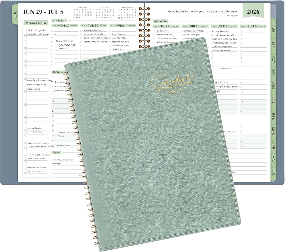 🍀 PROFESSIONAL DESIGN - Sturdy metal twin-wire binding allows for 360 degree folding over. Hardcover to protect inner pages. Coated monthly tabs and back pocket for storing your scattered items, such as cards.