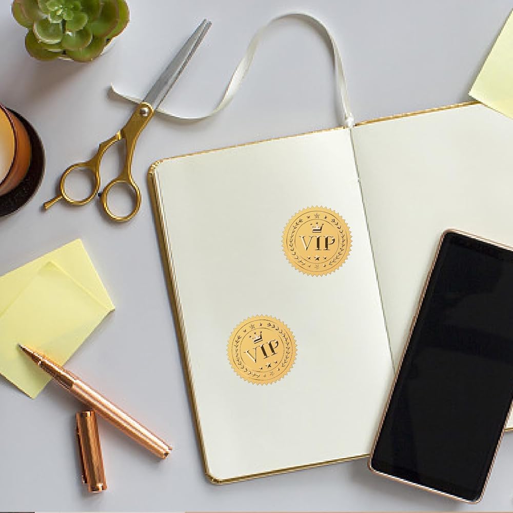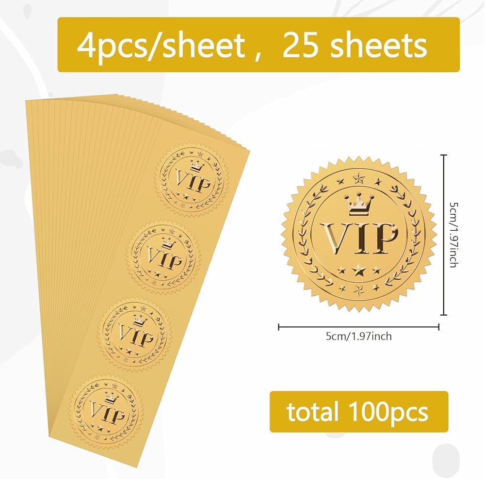 Exquisite Design: Elements of medal decoration sticker include "VIP" words lettering, embossed crown and star pattern, elegant resumption of work, self-adhesive backing, sparkling, smooth edges, good texture.